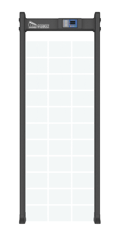 Внешние габариты (мм) ДхШхВ 2204х910х579. Габариты транспортной упаковки (мм) ДхШхВ 2287х1052х213. 11, 22, 33 зоны детектирования. Ширина прохода - 760 мм. Световая и звуковая индикации, параллельная эксплуатация (количество рабочих частот) - 50. Счетчик проходов, пропускная способность - 60 чел/мин. Степень защищенности (IP) 54