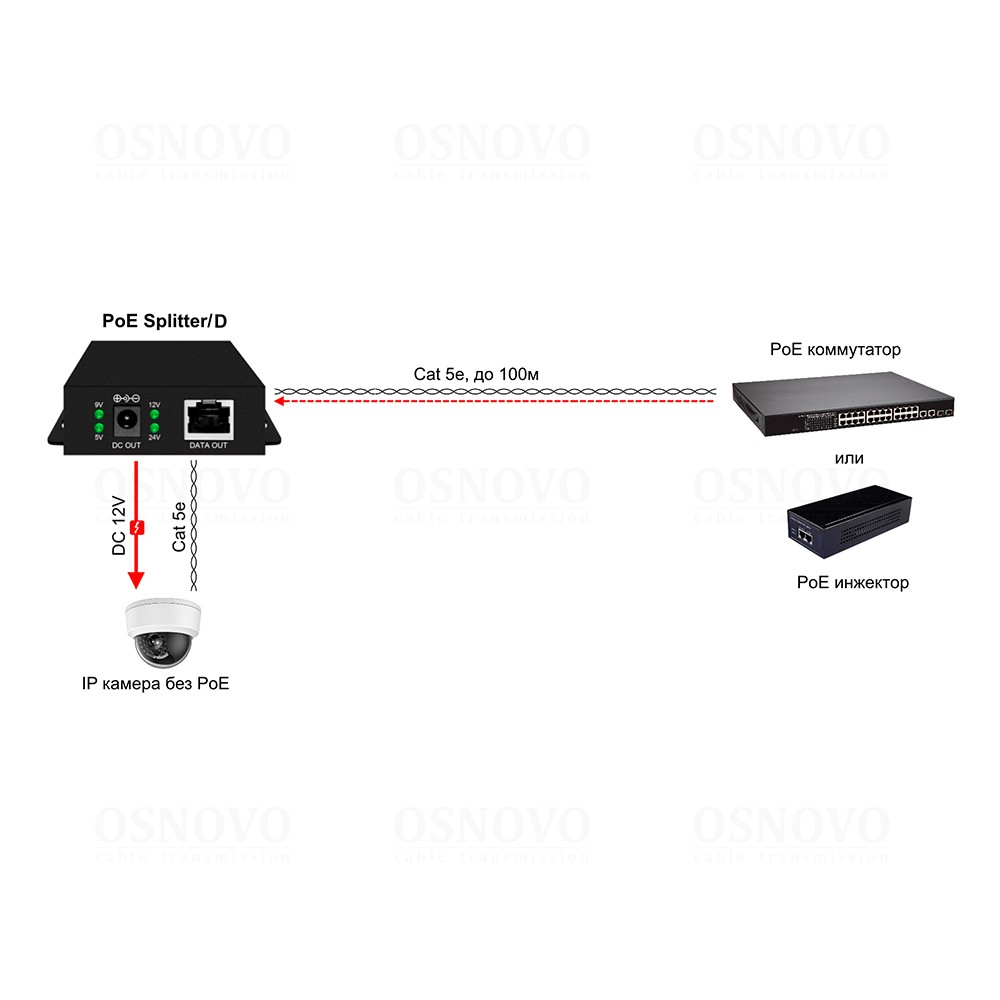 PoE-сплиттер 2,5G Ethernet с функцией выбора напряжения 5/9/12/24V. Соответствует стандартам PoE IEEE 802.3af/at. Предназначен для питания сетевого оборудования без поддержки PoE. Вход - RJ45(10/100/1000/2.5G Base-T) IEEE 802.3af/at/Passive PoE (40V-57V), Выход - RJ45(10/100/1000/2.5G Base-T), штекер DC 5,5x2,1. Выходное напряжение: IEEE 802.3af/at- 5V(2,5A), 9V(2A), 12V(2A), 24V(1A). Встроенная грозозащита 4кВ, электростатическая защита 8кВ. Размеры (ШxВxГ), 70x28x77мм. Вес:0,15 кг. Рабочая температура -40... +80°C.