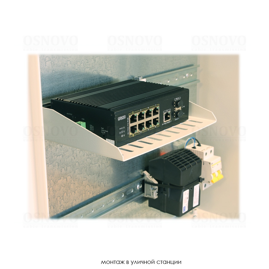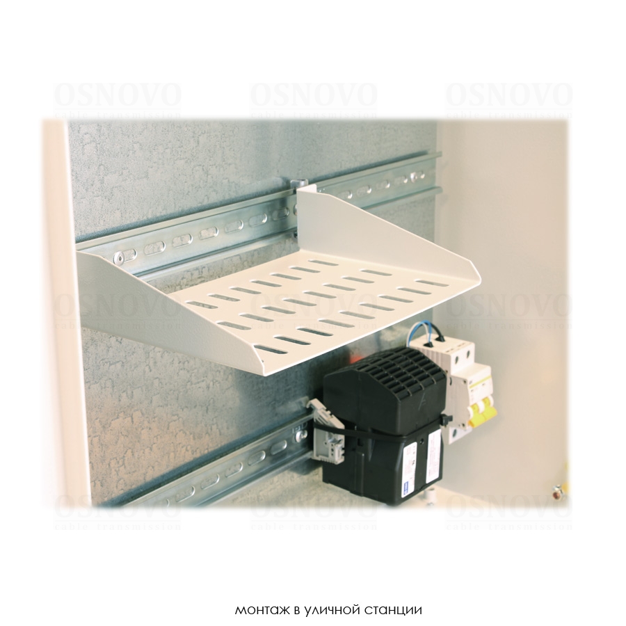 Для уличных станций всех типов и размеров. Ширина полки 255мм (полезная ширина 210мм), Глубина 147мм. Установка на монтажную панель уличной станции или на DIN-рейку.