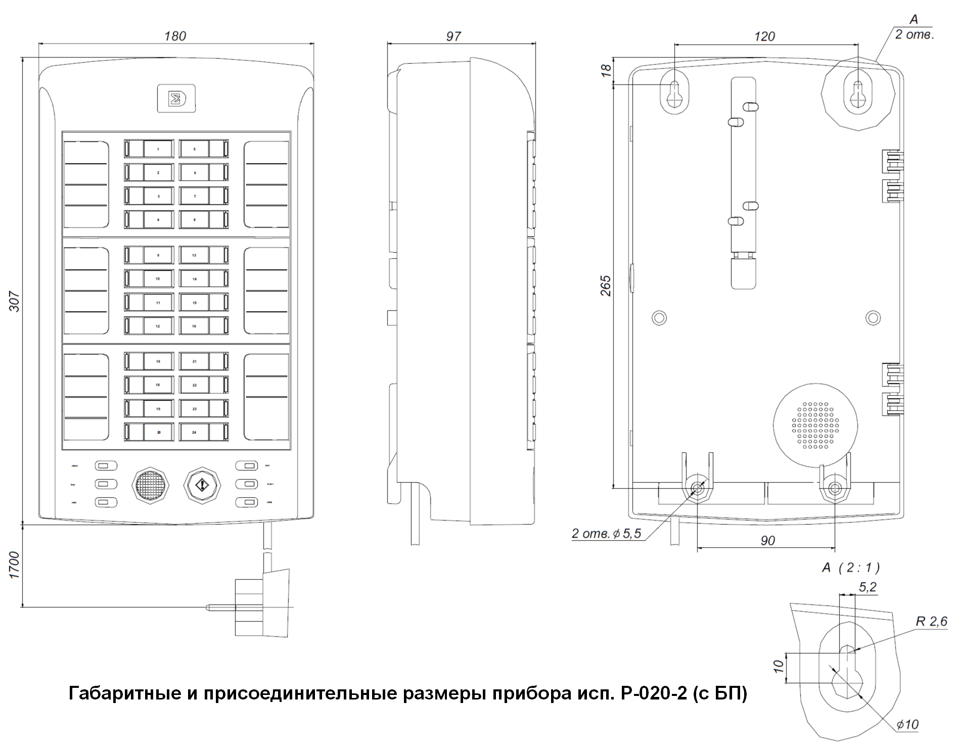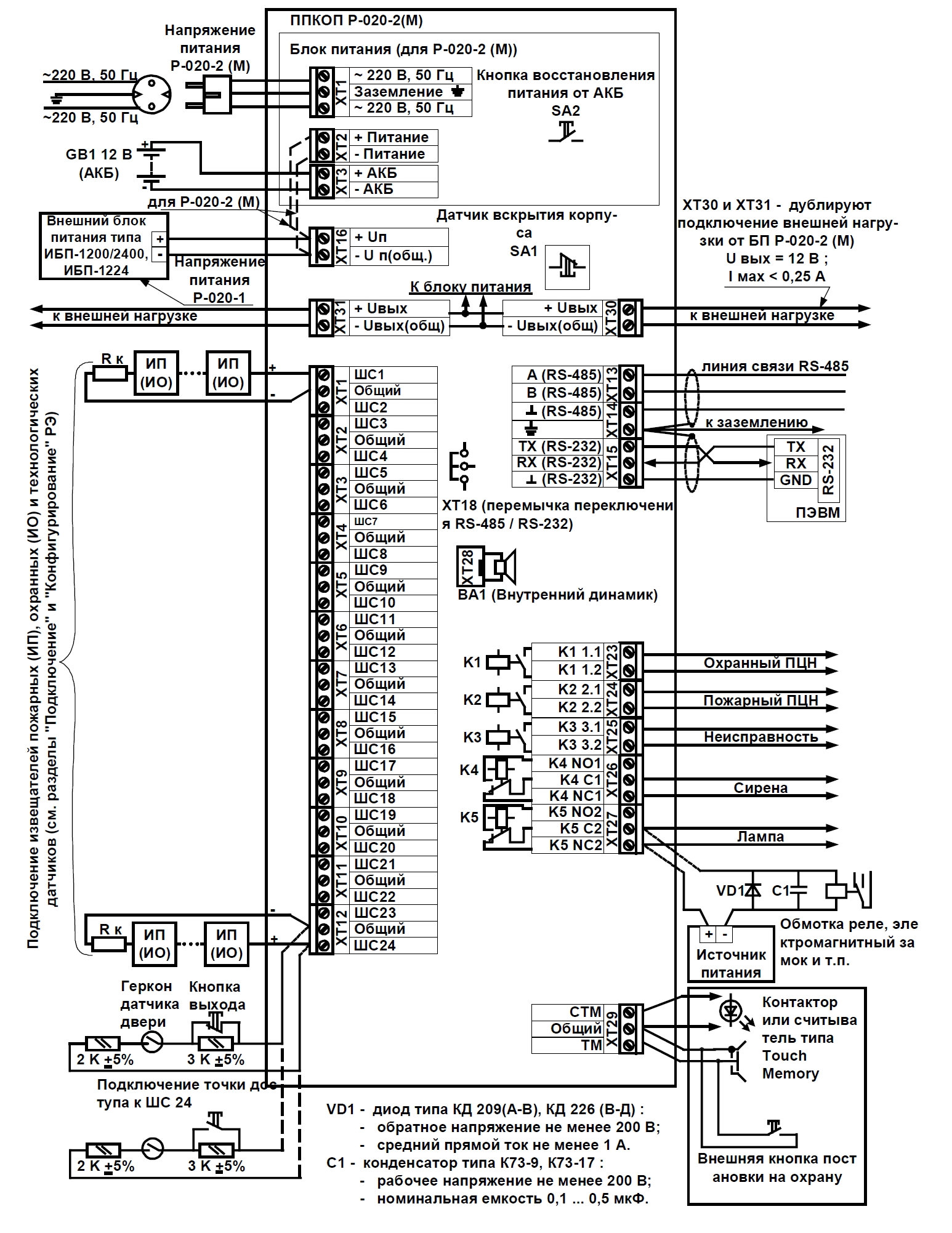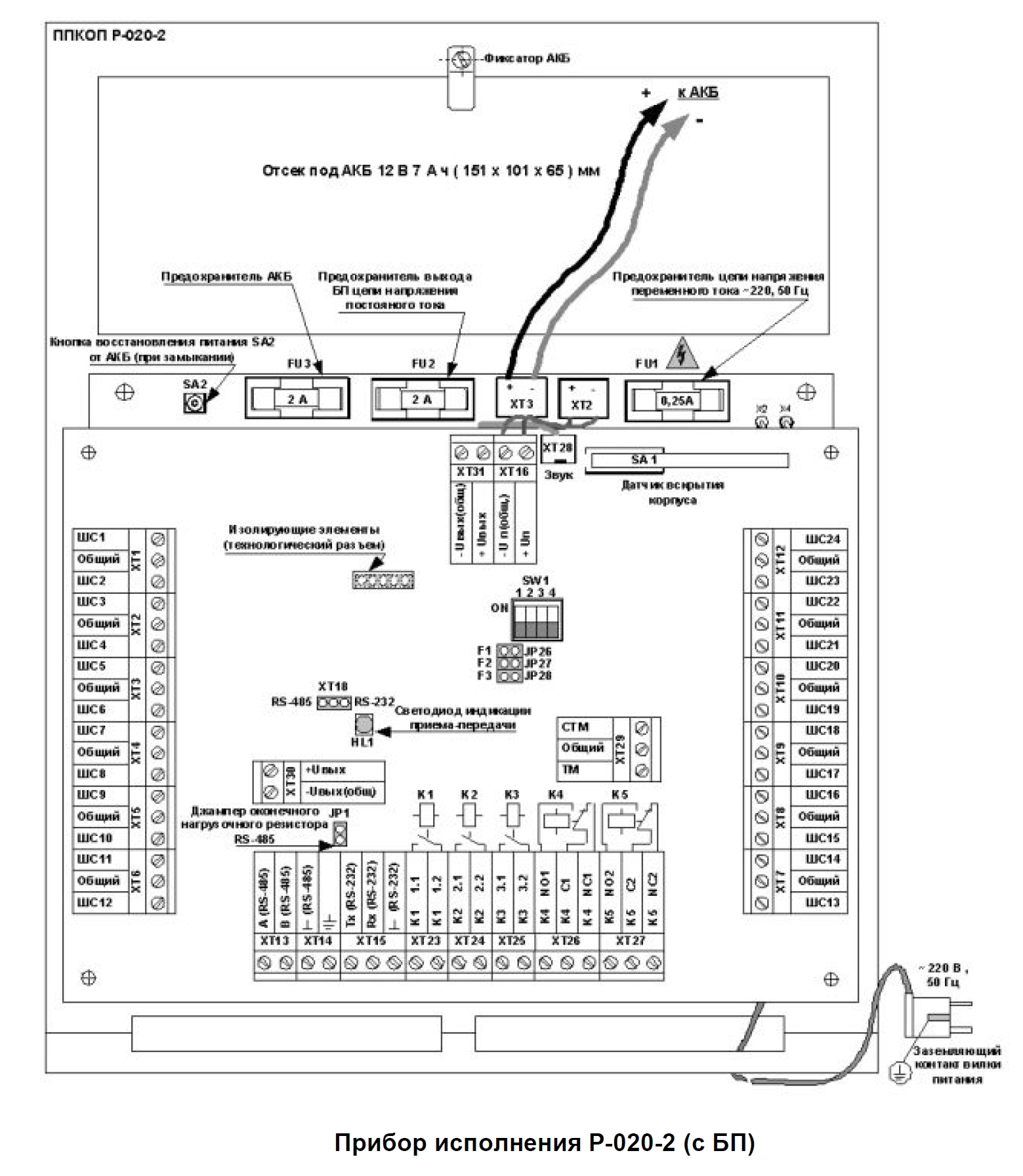 Прибор приёмно-контрольный охранно-пожарный “Р-020” (24 универсальных ШС, 5 реле управления, 500 пользователей, Touch Memory, точка доступа, RS-232, RS-485. Встроенный ИБП, БП (2*12В, 9Ач)