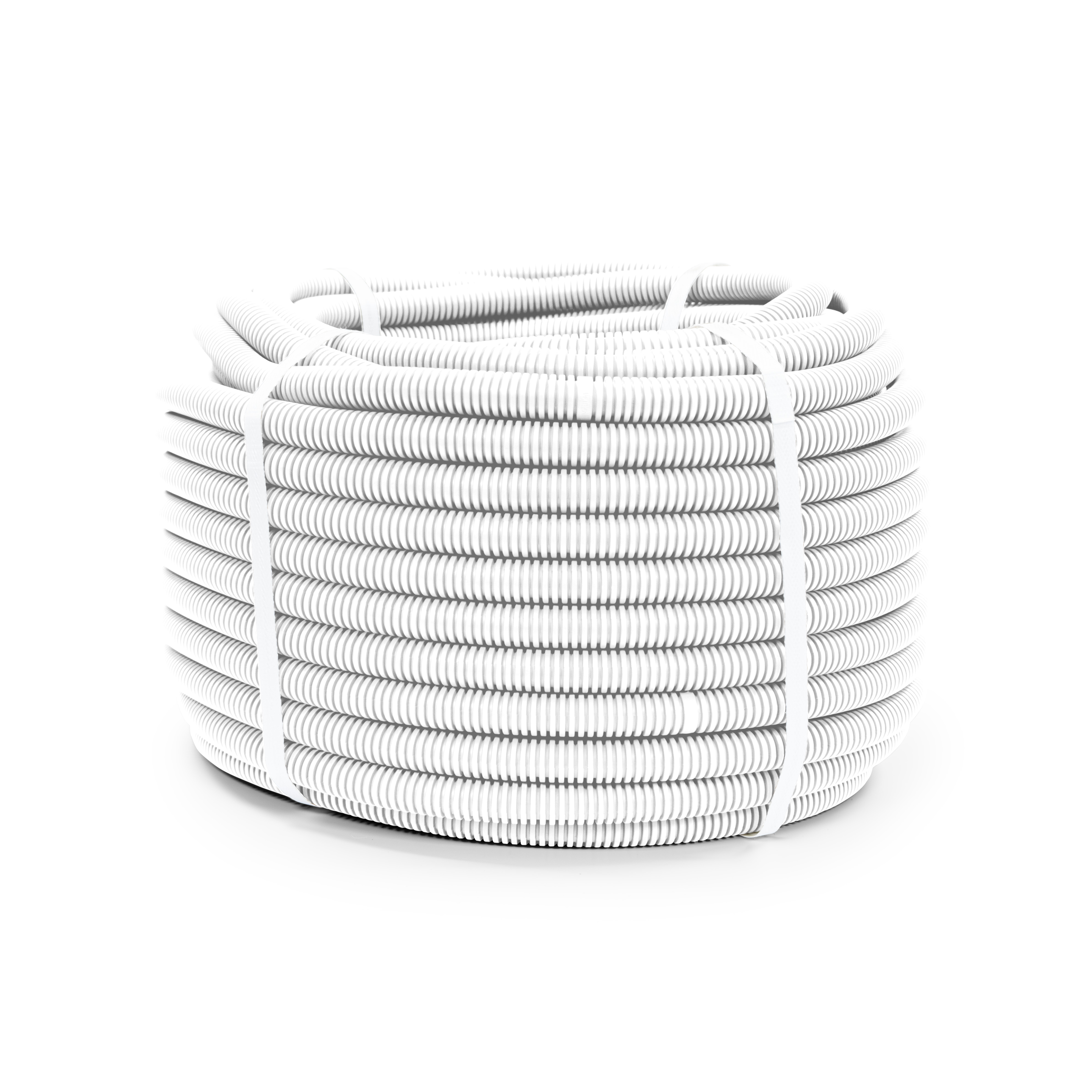 Труба гофрированная ПЛЛ лёгкая безгалогенная (HF) негорючая (НГ) стойкая к ультрафиолету (УФ) белая с/з d20 мм (50м/уп) Промрукав