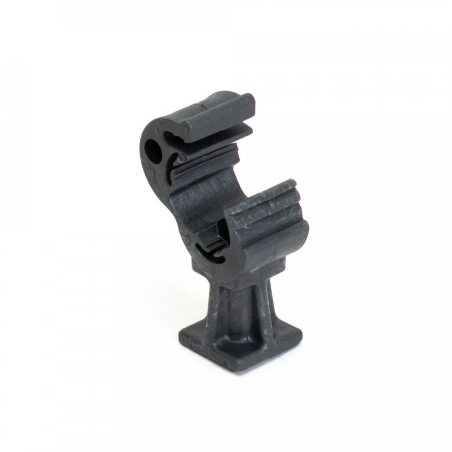 Держатель токоотвода пластиковый Промрукав предназначен для фиксации токоотвода d 8-10 мм к кровле, фасаду здания. Монтаж токоотвода осуществляется путем защелкивания держателя.