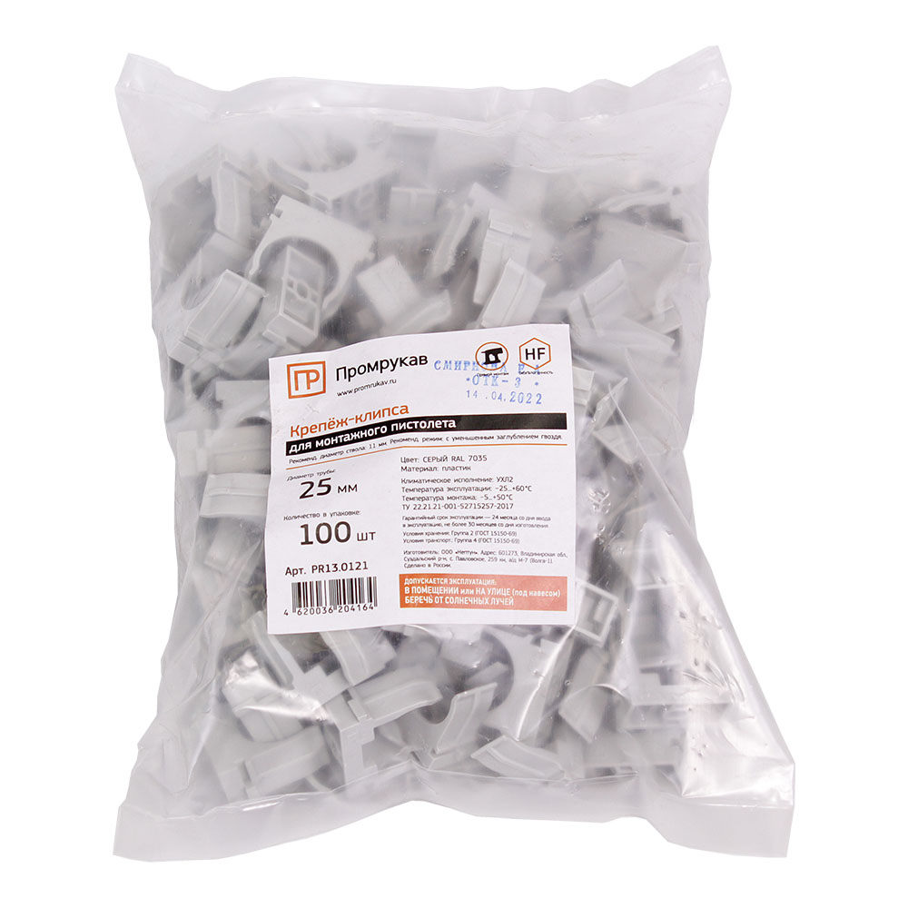 Крепеж-клипса для труб для прямого монтажа серая в п/э d25 мм (100шт/уп) Промрукав