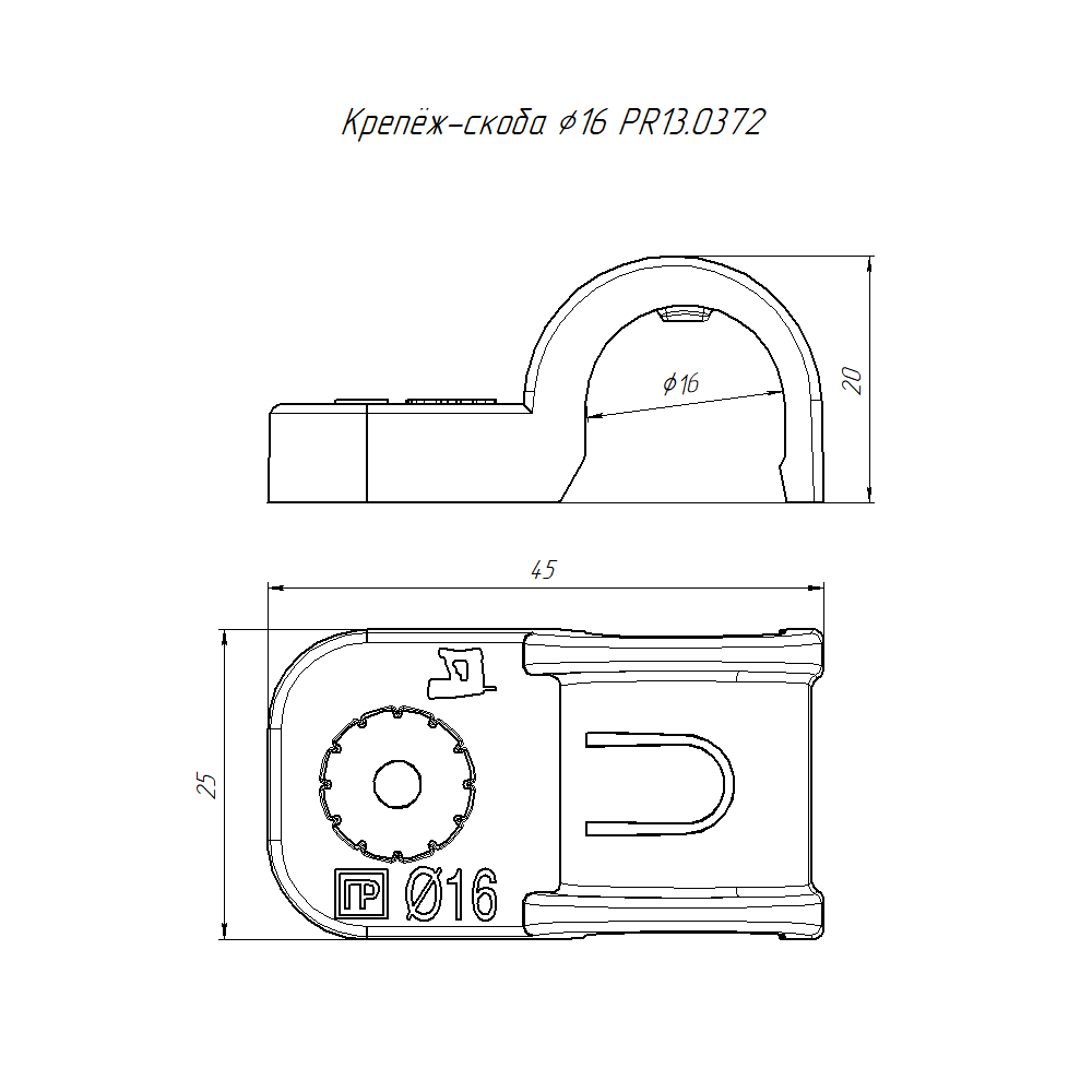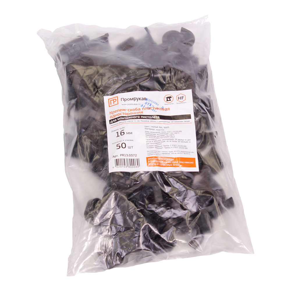 Крепеж-скоба пластиковая односторонняя для прямого монтажа атмосферостойкая чёрная в п/э d16 мм (50шт/уп) Промрукав