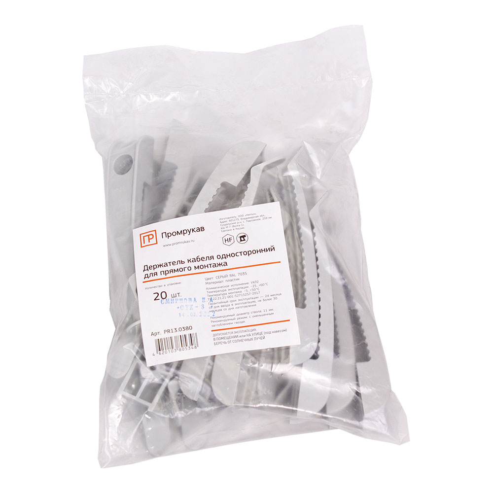 Держатель круглого кабеля односторонний для прямого монтажа на 8 мест серый (20шт/уп) Промрукав