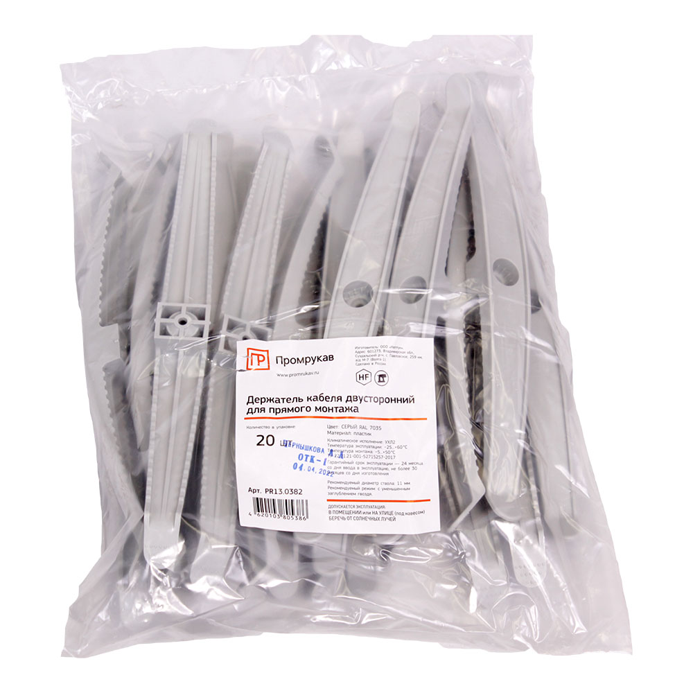 Держатель круглого кабеля двусторонний для прямого монтажа на 16 мест серый (20шт/уп) Промрукав