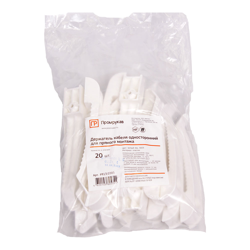 Держатель круглого кабеля односторонний для прямого монтажа на 8 мест белый (20шт/уп) Промрукав