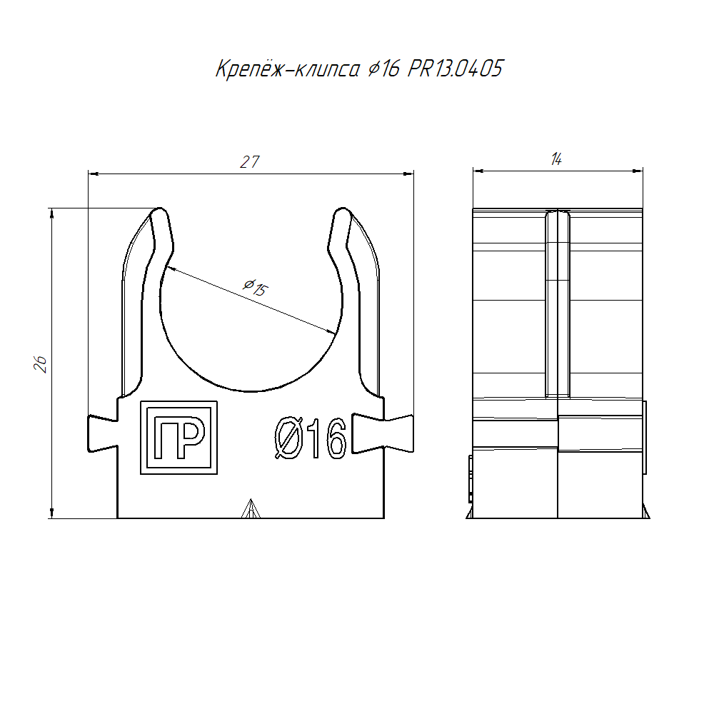 Крепеж-клипса для труб атмосферостойкая для прямого монтажа чёрная в п/э d16 мм (100шт/уп) Промрукав