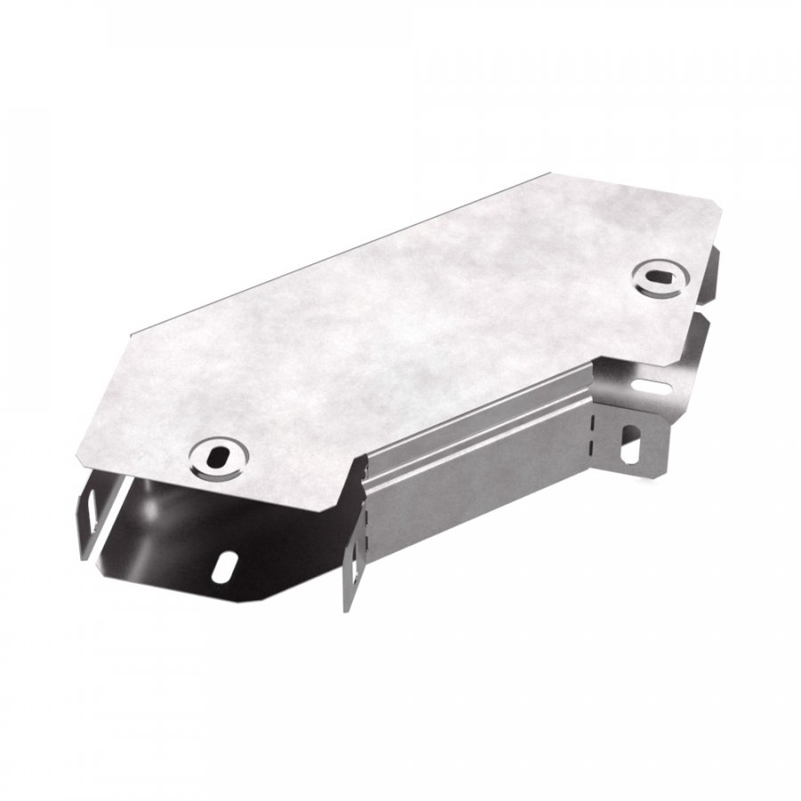 Аксессуары изготовленные из стали с защитным покрытием по методу Сендзимира – это изделия, на которых защитное цинковое покрытие было нанесено на листовую сталь перед изготовлением. Толщина защитного покрытия варьируется от 10 до 22мкм. Климатическое исполнение изделий УХЛ2, что предусматривают эксплуатацию в помещении и под навесом, при температуре эксплуатации от -80 до +150°С. Угол горизонтальный 90 градусов предназначен для поворота кабельных трасс в горизонтальном направлении на 90 градусов, для перфорированных и глухих лотков. В комплект входит крышка.