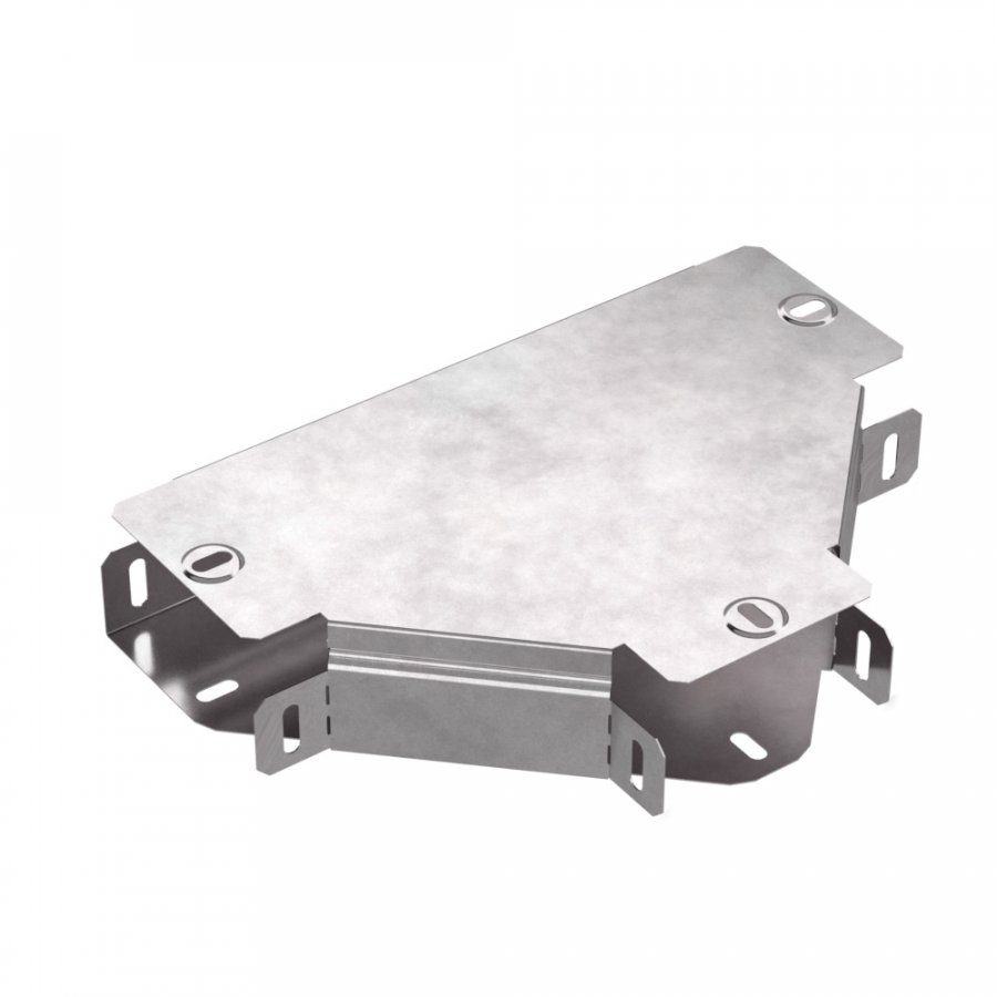 Аксессуары изготовленные из стали с защитным покрытием по методу Сендзимира – это изделия, на которых защитное цинковое покрытие было нанесено на листовую сталь перед изготовлением. Толщина защитного покрытия варьируется от 10 до 22мкм. Климатическое исполнение изделий УХЛ2, что предусматривают эксплуатацию в помещении и под навесом, при температуре эксплуатации от -80 до +150°С. Т-образный ответвитель предназначен для разветвления кабельных трасс в горизонтальном направлении, для перфорированных и глухих лотков. В комплект входит крышка.