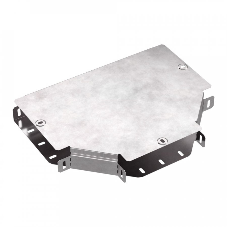 Аксессуары изготовленные из стали с защитным покрытием по методу Сендзимира – это изделия, на которых защитное цинковое покрытие было нанесено на листовую сталь перед изготовлением. Толщина защитного покрытия варьируется от 10 до 22мкм. Климатическое исполнение изделий УХЛ2, что предусматривают эксплуатацию в помещении и под навесом, при температуре эксплуатации от -80 до +150°С. Т-образный ответвитель предназначен для разветвления кабельных трасс в горизонтальном направлении,для перфорированных и глухих лотков. В комплект входит крышка.
