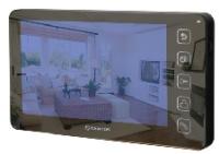 Монитор видеодомофона с зеркальной поверхностью 7 дюймов, управление сенсорными кнопками и джойстиком, hands free. Адресный интерком, копирование записей на SD-карту. Возможности подключения: 4 монитора, 2 вызывные панели, 2 видеокамеры. Питание 100-240 В, 50-60 Гц (блок питания встроенный).
