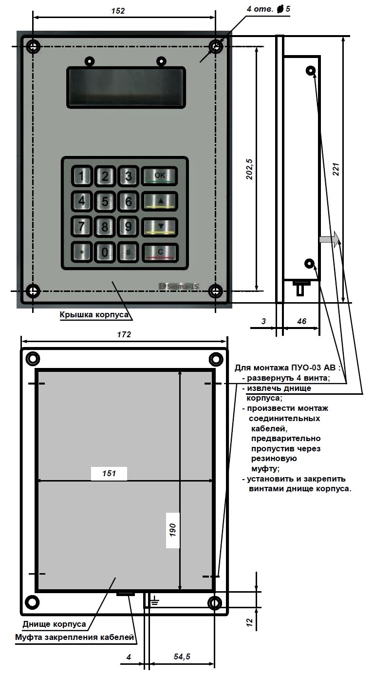 Пульт управления объектовый для охранной сигнализации, антивандальная конструкция, корпус из нержавеющей стали