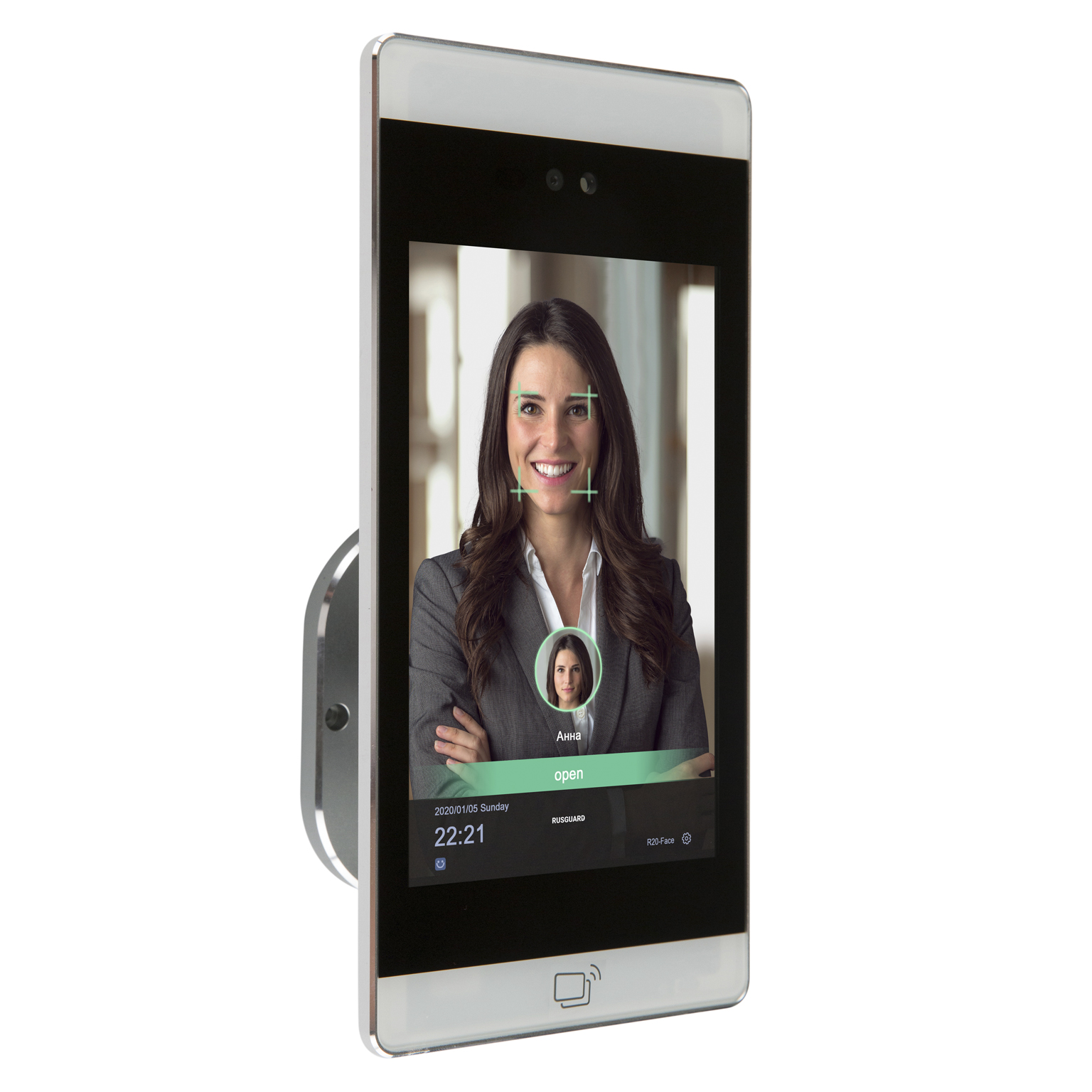 Терминал распознавания лиц, металлический корпус с экраном 8 дюймов, IPS LCD, сенсорный, антибликовый, 1280х800, угол обзора 170°, Интерфейсы: Ethernet; WiFi; RS-232; Wiegand 26/34/50, релейный выход; USB, память: 100 000 лиц, Точность распознания лиц: 99,78%, скорость: не более 1 сек, дальность: 0,5 - 4 метра (настраиваемая), запрет прохода по фотографии лица, белая и ИК подсветка, размер без кронштейна: 133х272х26,5 мм, с кронштейном: 133х272х91 мм, DC 12V/1A, max.24W, -10...+50C, IP 54. Комплектация: Терминал, поворотный кронштейн крепления на стену, внешний блок питания, инструкция, упаковка. Крепление на стену.