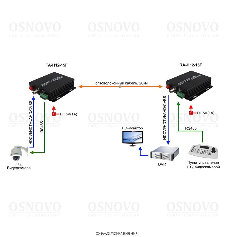 Оптический приемник 1 канала видео HDCVI/HDTVI/AHD/CVBS и 1 канала управления (RS485) по одномодовому оптоволокну до 20км. Максимальное разрешение 2560x1920. Рабочие длины волн WDM: 1310нм/1550нм. Вх. - FC/Роз.5,5мм(DC5V). Вых. - BNC/Клемм.колодка(RS485). В комплекте: БП DC5V(1A). Размеры (ШxВxГ): 108*28*105мм. Вес:0,6 кг. Рабочая температура: -15…+60°С.