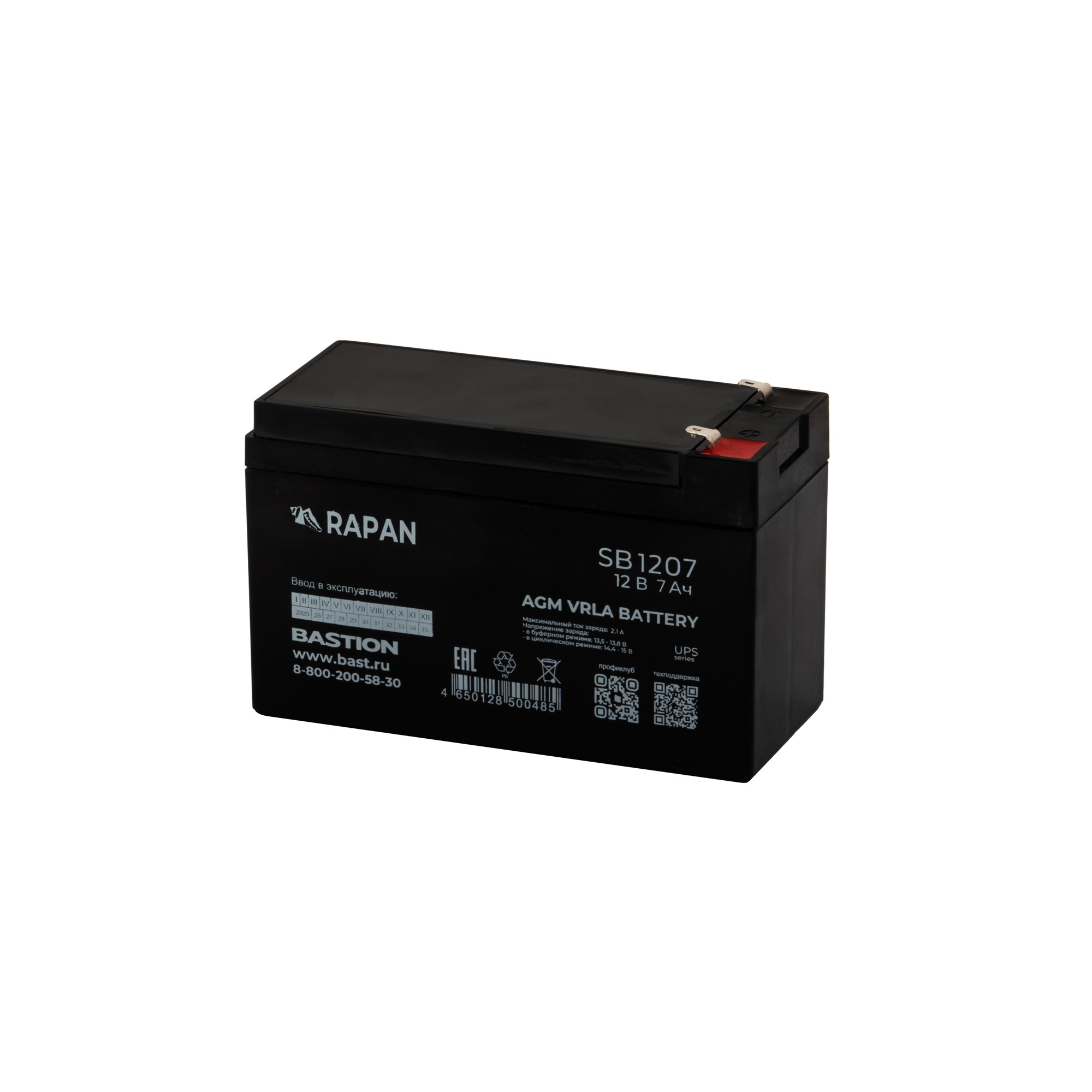 <div><h2>Технические характеристики <!-- -->RAPAN SB 1207</h2><div><figure class="table"><table class="table-bordered table-striped"><tbody><tr><td style="text-align:center;"><strong>№ п/п</strong></td><td style="text-align:center;" colspan="2"><strong>Наименование параметра</strong></td><td style="text-align:center;"><strong>Значение параметра</strong></td></tr><tr><td>1</td><td colspan="2">Номинальное напряжение, В</td><td style="text-align:center;"><strong>12</strong></td></tr><tr><td rowspan="4">2</td><td rowspan="4">Номинальная ёмкость, Ач (при 25°С)</td><td>через 20 часов (ток разряда – 0,05С)</td><td style="text-align:center;"><strong>7</strong></td></tr><tr><td>через 10 часов (ток разряда – 0,1С)</td><td style="text-align:center;"><strong>6,3</strong></td></tr><tr><td>через 5 часов (ток разряда – 0,2С)</td><td style="text-align:center;"><strong>5,9</strong></td></tr><tr><td>через 1 час (ток разряда – 1С)</td><td style="text-align:center;"><strong>4,0</strong></td></tr><tr><td rowspan="4">3</td><td rowspan="4">% ёмкости через 20 часов в зависимости от температуры эксплуатации</td><td>при 40°С</td><td style="text-align:center;"><strong>102</strong></td></tr><tr><td>при 25°С</td><td style="text-align:center;"><strong>100</strong></td></tr><tr><td>при 0°С</td><td style="text-align:center;"><strong>85</strong></td></tr><tr><td>при -15°С</td><td style="text-align:center;"><strong>65</strong></td></tr><tr><td>4</td><td colspan="2">Внутреннее сопротивление, мОм (при 25°С и полностью заряженной АКБ)</td><td style="text-align:center;"><strong>40</strong></td></tr><tr><td rowspan="2">5</td><td rowspan="2">Заряд постоянным напряжением (при 25°С)</td><td>Циклический режим, В</td><td style="text-align:center;"><strong> 14,4 ÷ 15,0</strong></td></tr><tr><td>Буферный режим, В</td><td style="text-align:center;"><strong> 13,5 ÷ 13,8</strong></td></tr><tr><td>6</td><td colspan="2">Максимальный ток заряда, А</td><td style="text-align:center;"><strong>2,1</strong></td></tr><tr><td rowspan="3">7</td><td rowspan="3">% ёмкости после хранения (при 25°С)</td><td>3 месяца</td><td style="text-align:center;"><strong>92</strong></td></tr><tr><td>6 месяца</td><td style="text-align:center;"><strong>83</strong></td></tr><tr><td>12 месяца</td><td style="text-align:center;"><strong>65</strong></td></tr><tr><td>8</td><td colspan="2">Габаритные размеры ШхГхВ без упаковки, мм, не более</td><td style="text-align:center;"><span style="font-family:"Arial",sans-serif;font-size:10.0pt;"><span style="mso-ansi-language:RU;mso-bidi-language:AR-SA;mso-fareast-font-family:"Times New Roman";mso-fareast-language:AR-SA;"><strong>65х151х100</strong></span></span></td></tr><tr><td>9</td><td colspan="2">Масса без упаковки, не более, кг</td><td style="text-align:center;"><strong>1,86</strong></td></tr><tr><td rowspan="3">10</td><td rowspan="3">Диапазон рабочих температур, °С</td><td>заряд</td><td style="text-align:center;"><strong> от -10 до +50</strong></td></tr><tr><td>разряд</td><td style="text-align:center;"><strong> от -20 до +50</strong></td></tr><tr><td>хранение</td><td style="text-align:center;"><strong> от -35 до +50</strong></td></tr><tr><td>11</td><td colspan="2">Тип клеммы</td><td style="text-align:center;"><strong>F1 нож</strong></td></tr></tbody></table></figure></div></div>