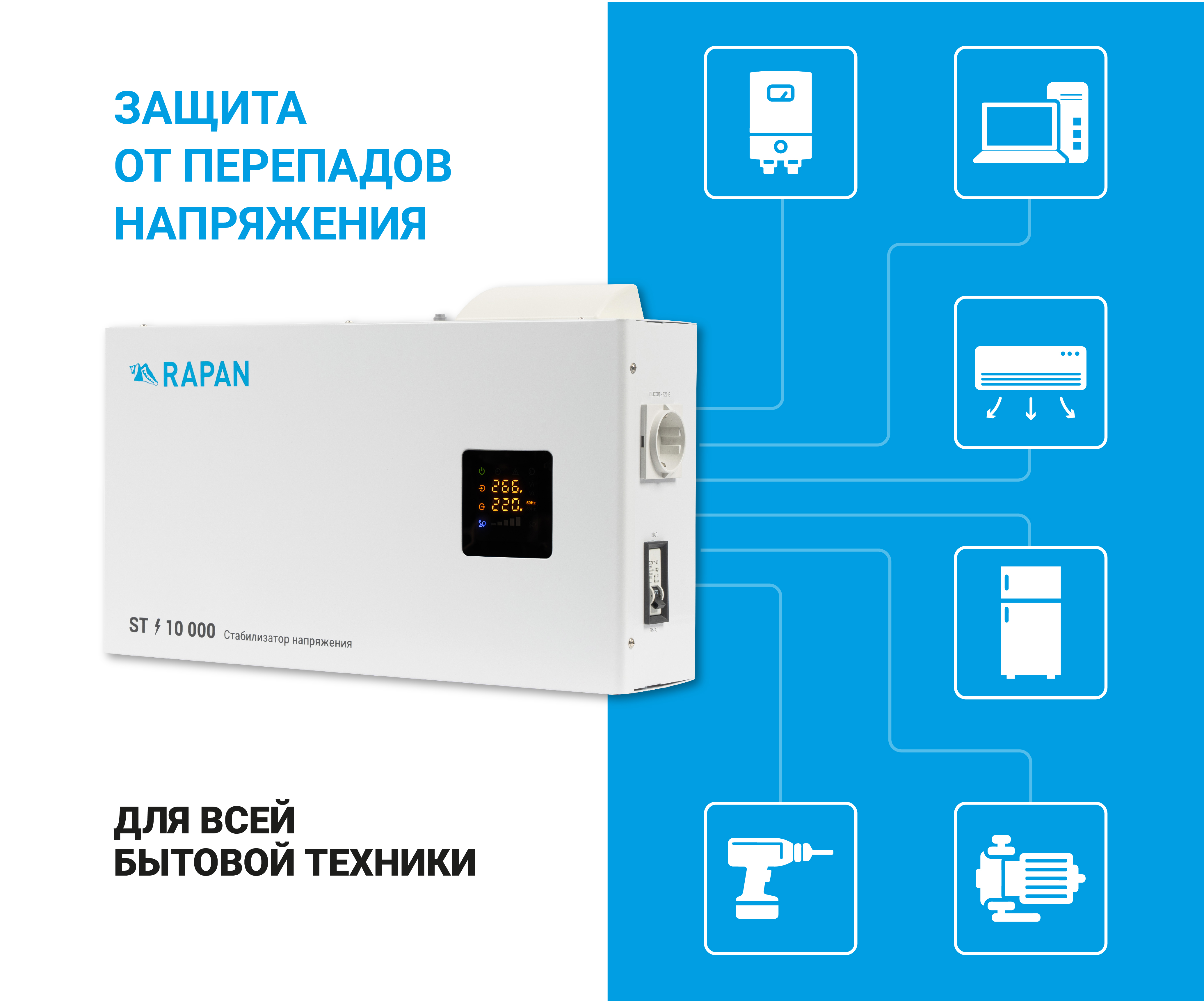 RAPAN ST – релейный стабилизатор, разработанный для защиты вашего электрооборудования от перепадов напряжения.