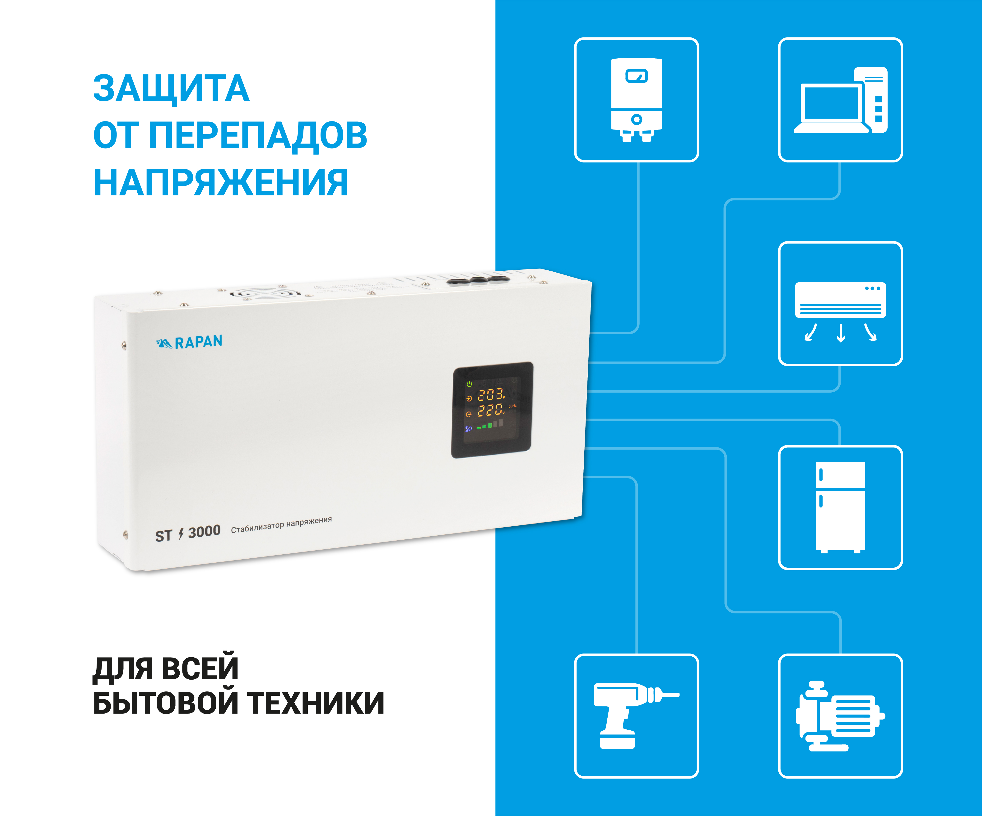 RAPAN ST – релейный стабилизатор, разработанный для защиты вашего электрооборудования от перепадов напряжения.