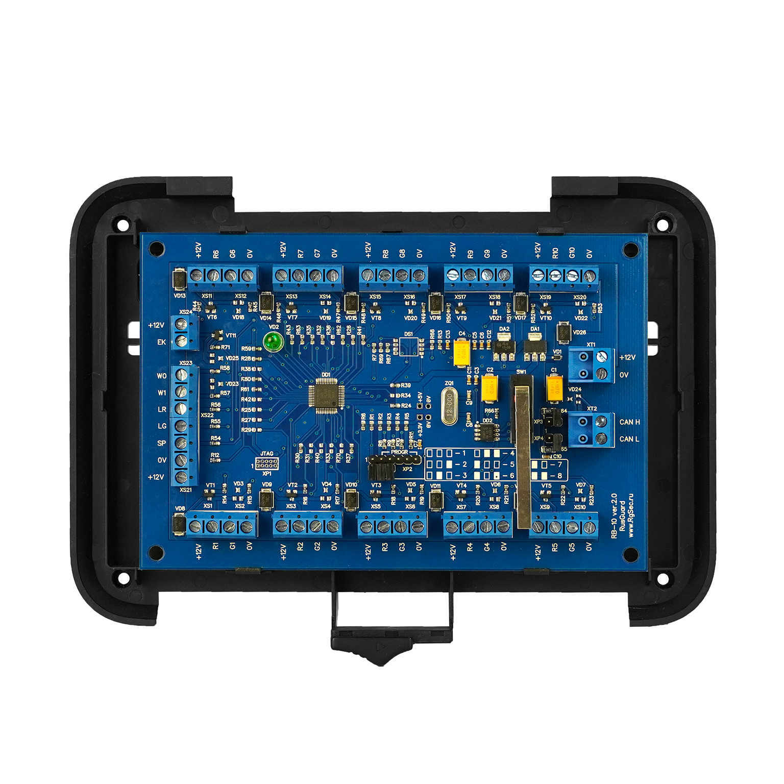 Релейный модуль RB-10 может контролировать 10 герконов и 10 исполнительных устройств.