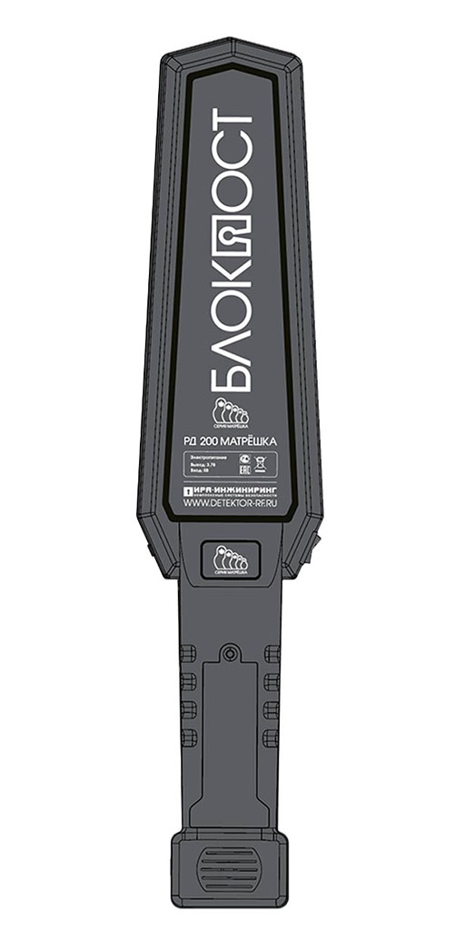 Ручной металлодетектор (415х90х33 мм). Предельно максимальная дальность детектирования: Пистолет - 200 мм; Штык-нож - 200 мм; Бритвенное лезвие - 50 мм; Опасная бритва - 100 мм; Концелярская скрепка - 30 мм. Li-ion - литий-ионный аккумулятор типа 18650 не менее 2000mah. Диапазон рабочих температур от -15 до +60 °C Масса нетто 0,3 кг.