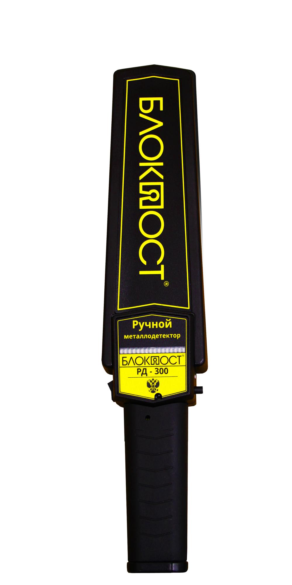 Ручной металлодетектор БЛОКПОСТ PД-300 (415х85х40 мм). Предельно максимальная дальность детектирования: Граната - 190 мм; Пистолет - 250 мм; Штык-нож - 200 мм; Бритвенное лезвие - 30 мм; Фрагмент полотна для ручной ножовки по ГОСТ 6645-86 длиной 150 мм - 90 мм. Время работы - до 35 часов. Звуковая и световая индикации. Рабочая частота - 93 кГц. Экспортная упаковка.