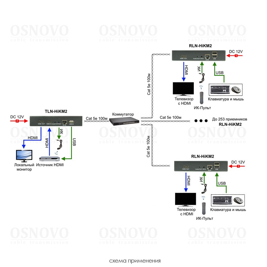 Дополнительный приёмник для комплекта TLN-HiKM2+RLN--HiKM2. Позволяет использовать режим Multicast для передачи HDMI по сети Ethernet с одного источника на множество мониторов (до 253). Разрешение до 1920x1080(60Гц), 36бит. Стандарт видеосжатия H.264(AVC). Поддержка HDMI 1.3, HDCP 1.2. Вх. -USB(A)x2/RJ45/TRS3.5мм(ИК)/Роз.2,1х5мм(DC12V). Вых. - TRS3,5мм(Audio OUT/неактивен)/TGR(RS232/неактивен)/HDMI(A). В комплекте БП DC12V(1А) - 1шт, ИК приёмник. Размеры (ШxВxГ): 150x30x64мм. Вес:0,3 кг. Рабочая температура -15…+55°С.