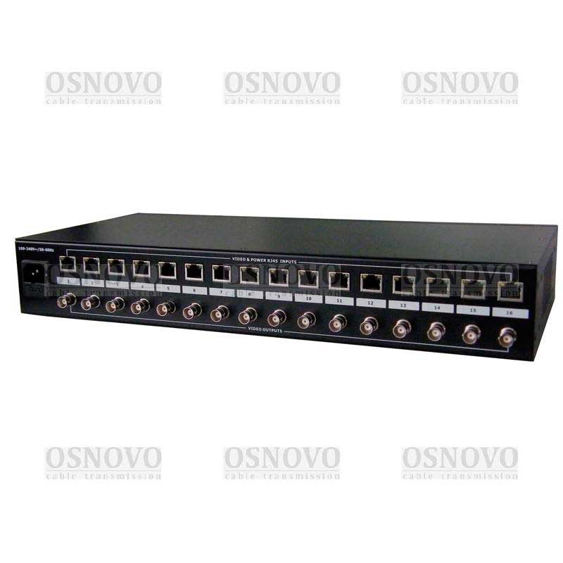 Пассивный 16-ти канальный приемник композитного видеосигнала + питание (стабилизированное) по витой паре CAT5e до 300м. Совместная работа с TP-CP/S пассивным передатчиком, обеспечивающим питание DC12V(1,1А) камер по кабелю UTP CAT5e на каждый канал. Разъемы: Вх.RJ45x16, Вых. BNCx16, Питание AC220V(320W). Встроенная защита от статического электричества и воздушного разряда (ГОСТ Р 51317.4.2-2010). Рабочая температура -20...+70°C. Размеры (ШxВxГ) 430x200x66.8мм.