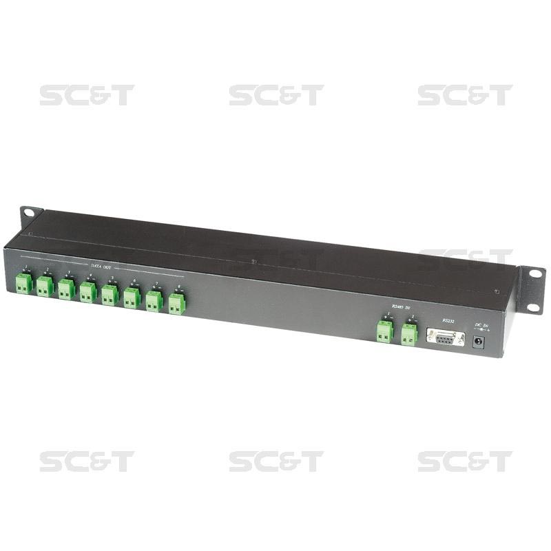 Последовательный распределитель данных 1 вход RS485 под клеммы или RS232, 8 выходов RS485 под клеммы, максимальное расстояние подключения до 1200м по витой паре, возможность каскадного подключения к RS008, RS016, корпус 19", 1U, блок питания AC220V/DC12V. Размеры (ШxВxГ): 483x44x100мм. Рабочая температура -40...+55°C.