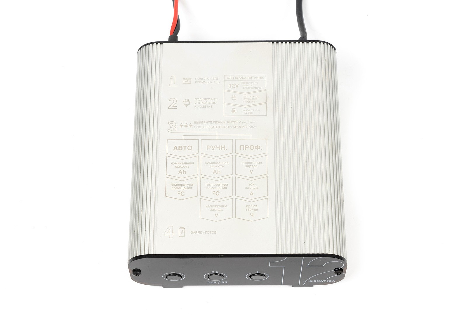 SKAT 12A – это компактное автоматическое зарядное устройство для аккумуляторов (АКБ), в котором реализованы функции профессионального лабораторного оборудования.