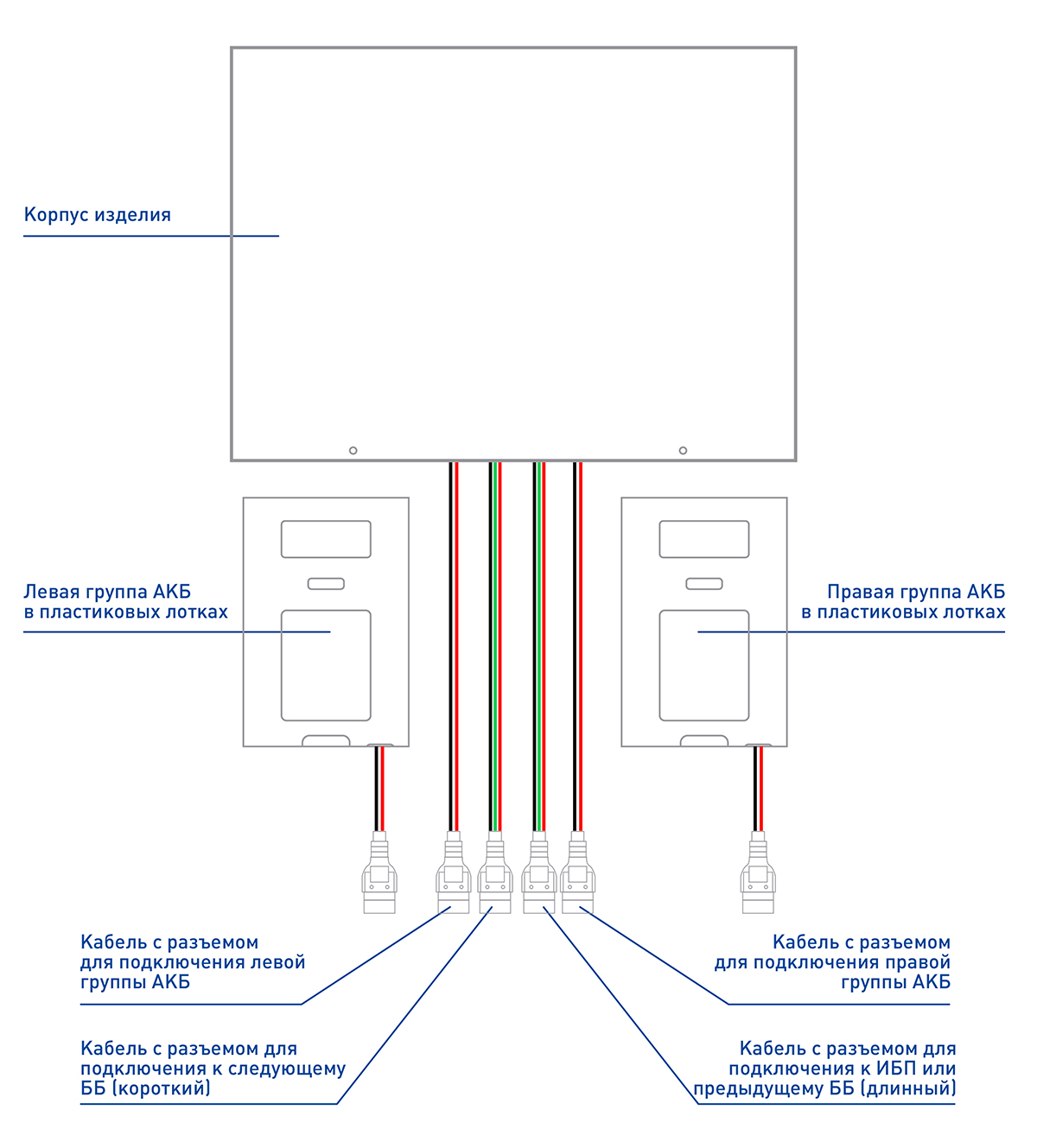 К одному источнику бесперебойного питания (далее по тексту — ИБП) можно подключить от одного до четырех батарейных блоков (далее по тексту — ББ).