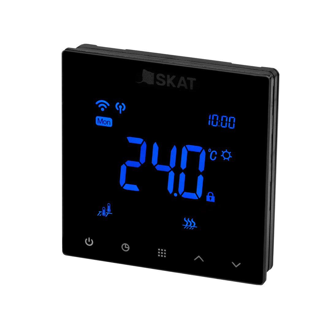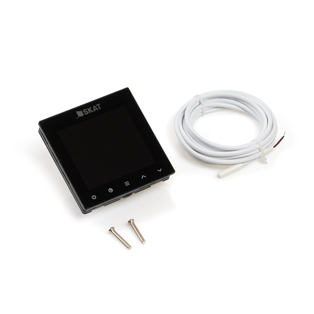 <div><h2>Технические характеристики <!-- -->SKAT HT TS 16А Lux</h2><div><figure class="table"><table class="table table-bordered table-striped"><tbody><tr><td>Питание ТЕРМОСТАТА</td><td style="text-align:center;"><strong>100-240 В AC, 50/60 Гц</strong></td></tr><tr><td>Максимальная подключаемая нагрузка</td><td style="text-align:center;"><strong>16 А / 250 ВА</strong></td></tr><tr><td>Погрешность термостата</td><td style="text-align:center;"><strong>±0,1 °С</strong></td></tr><tr><td>Диапазон регулирования комнатной тем-ры</td><td style="text-align:center;"><strong>5~70 °С</strong></td></tr><tr><td>Диапазон регулирования темп-ры пола</td><td style="text-align:center;"><strong>5~70 °С</strong></td></tr><tr><td>Рабочий температурный диапазон</td><td style="text-align:center;"><strong>0~+50 °С</strong></td></tr><tr><td>Темп-ра транспортировки и хранения</td><td style="text-align:center;"><strong>-10~60 °С</strong></td></tr><tr><td>Внешний датчик температуры</td><td style="text-align:center;"><strong>NTC 10 или 100 К</strong></td></tr><tr><td>Размеры ТЕРМОСТАТА (ВxШxГ)</td><td style="text-align:center;"><strong>89×89×45 мм</strong></td></tr></tbody></table></figure></div></div>