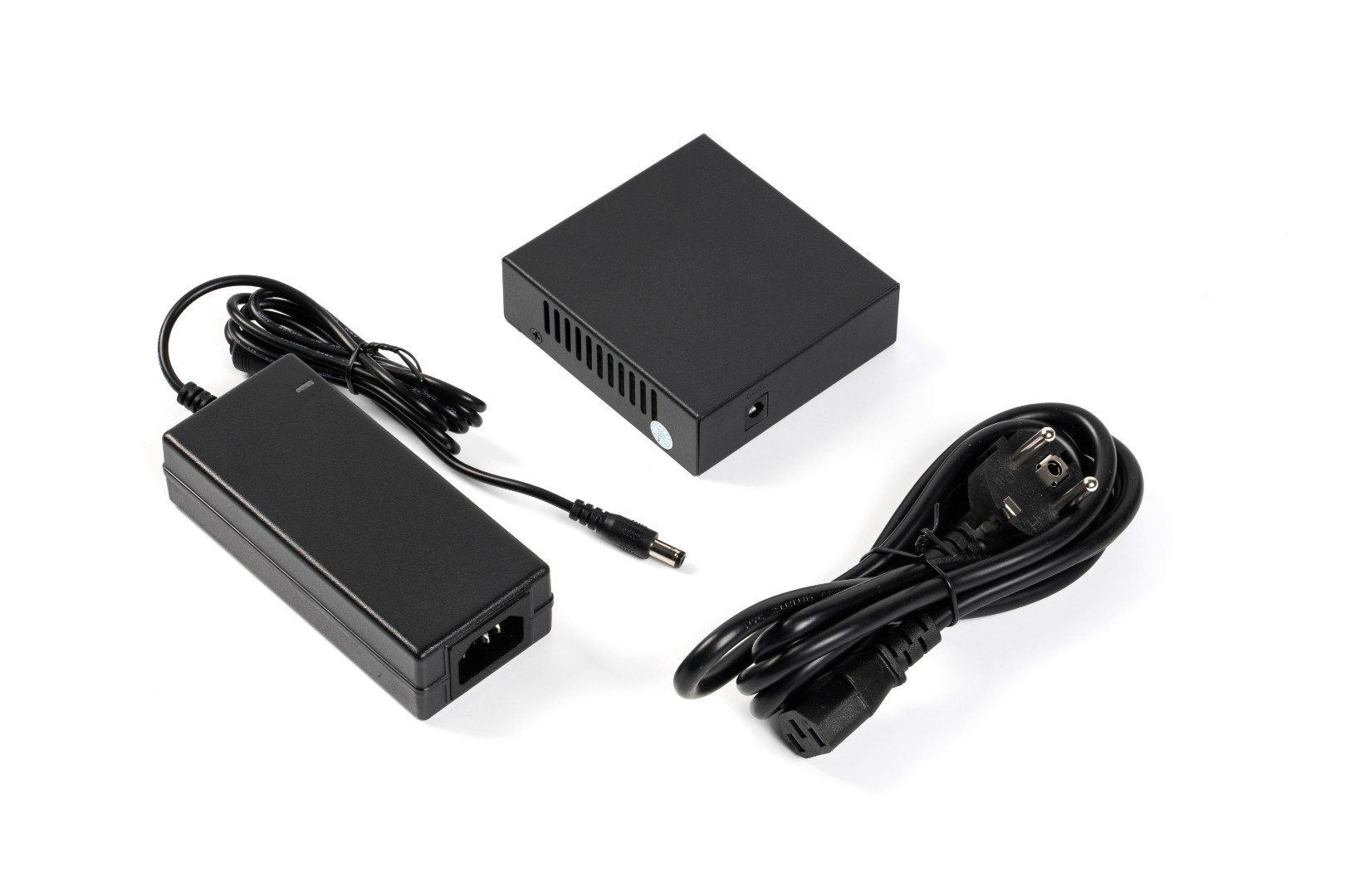 - Поддержка питания для устройств PoE, таких как точки доступа и камеры видеонаблюдения, подключенных по кабелям Ethernet Cat 5e/6.