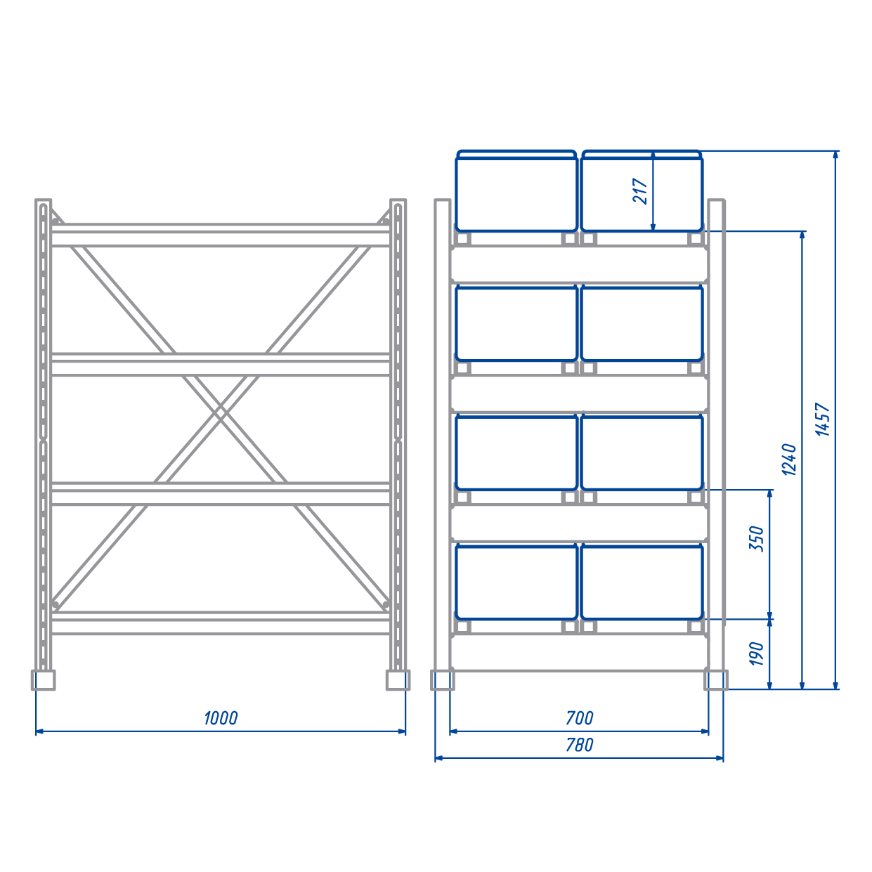 Грузоподъемность стеллажа / полки: до 1760 / 440 кг
