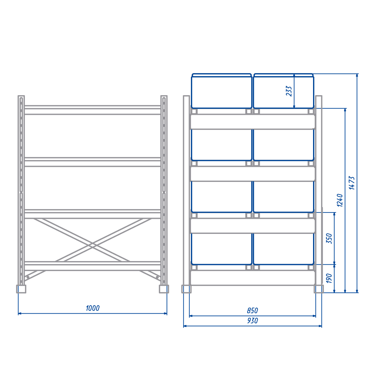 Грузоподъемность стеллажа / полки: до 2000 / 500 кг