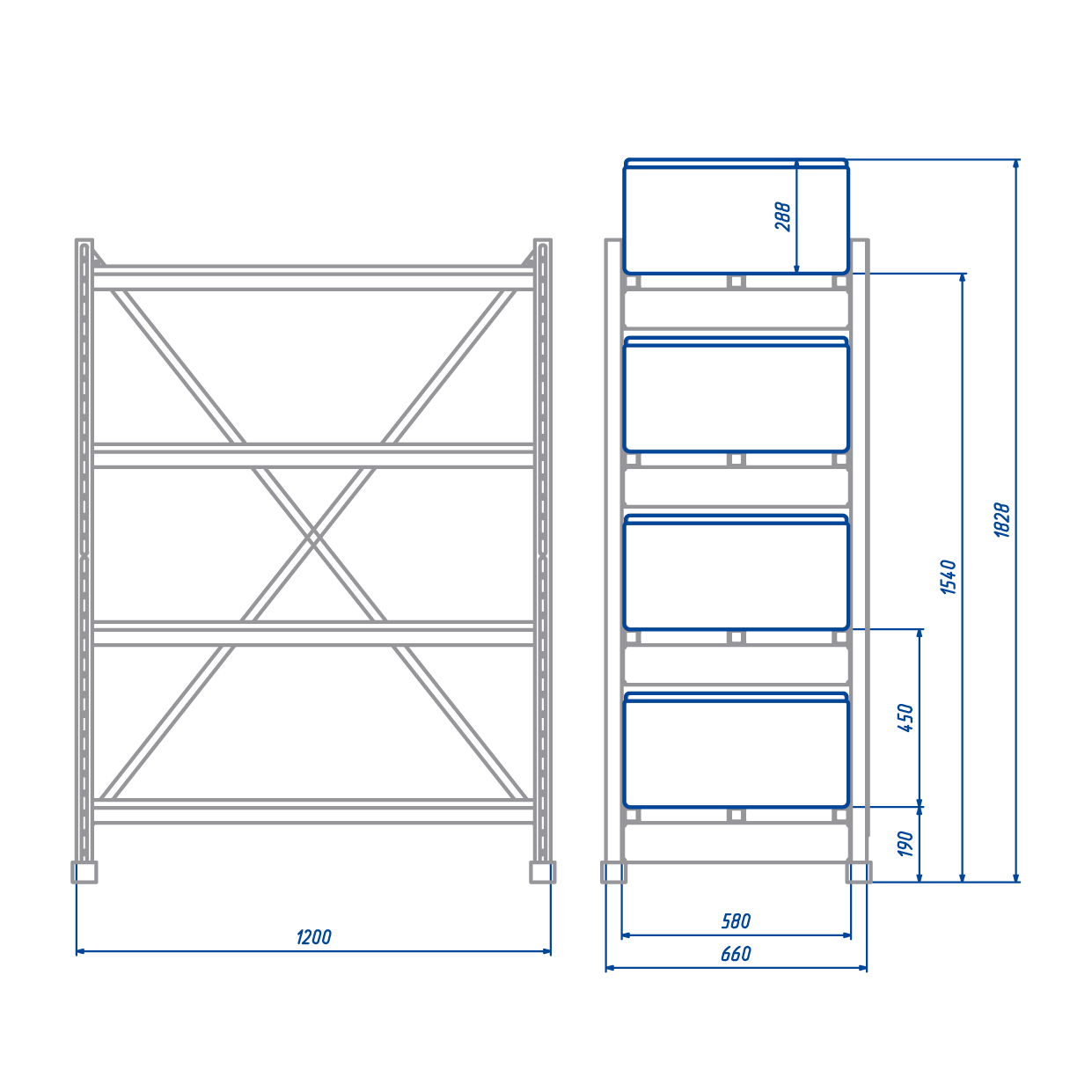 Грузоподъемность стеллажа / полки: до 2040 / 510 кг
