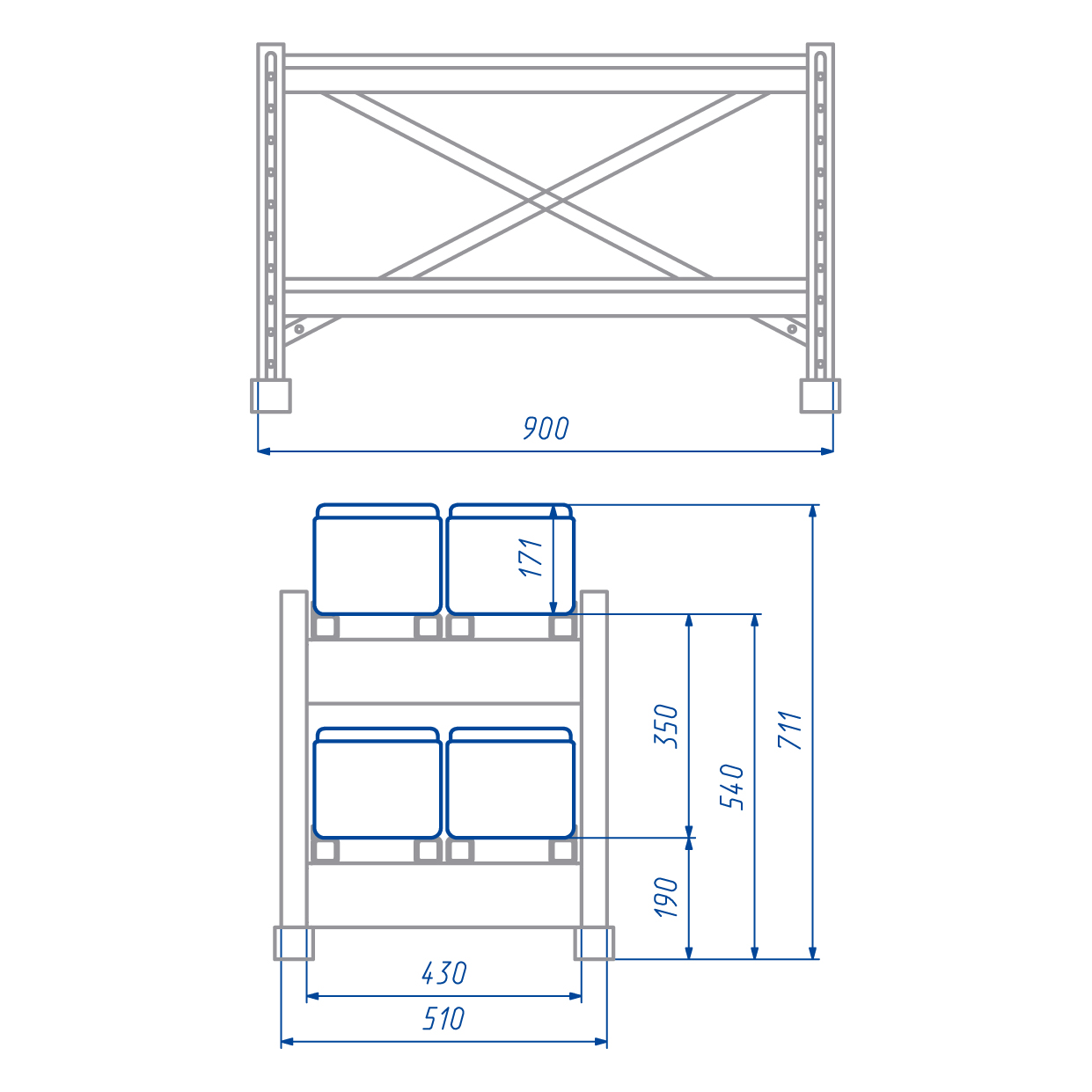 Грузоподъемность стеллажа / полки: до 380 / 190 кг