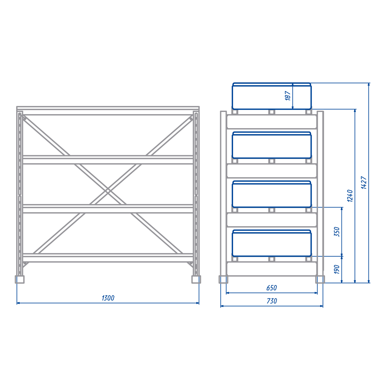 Грузоподъемность стеллажа / полки: до 1560 / 390 кг