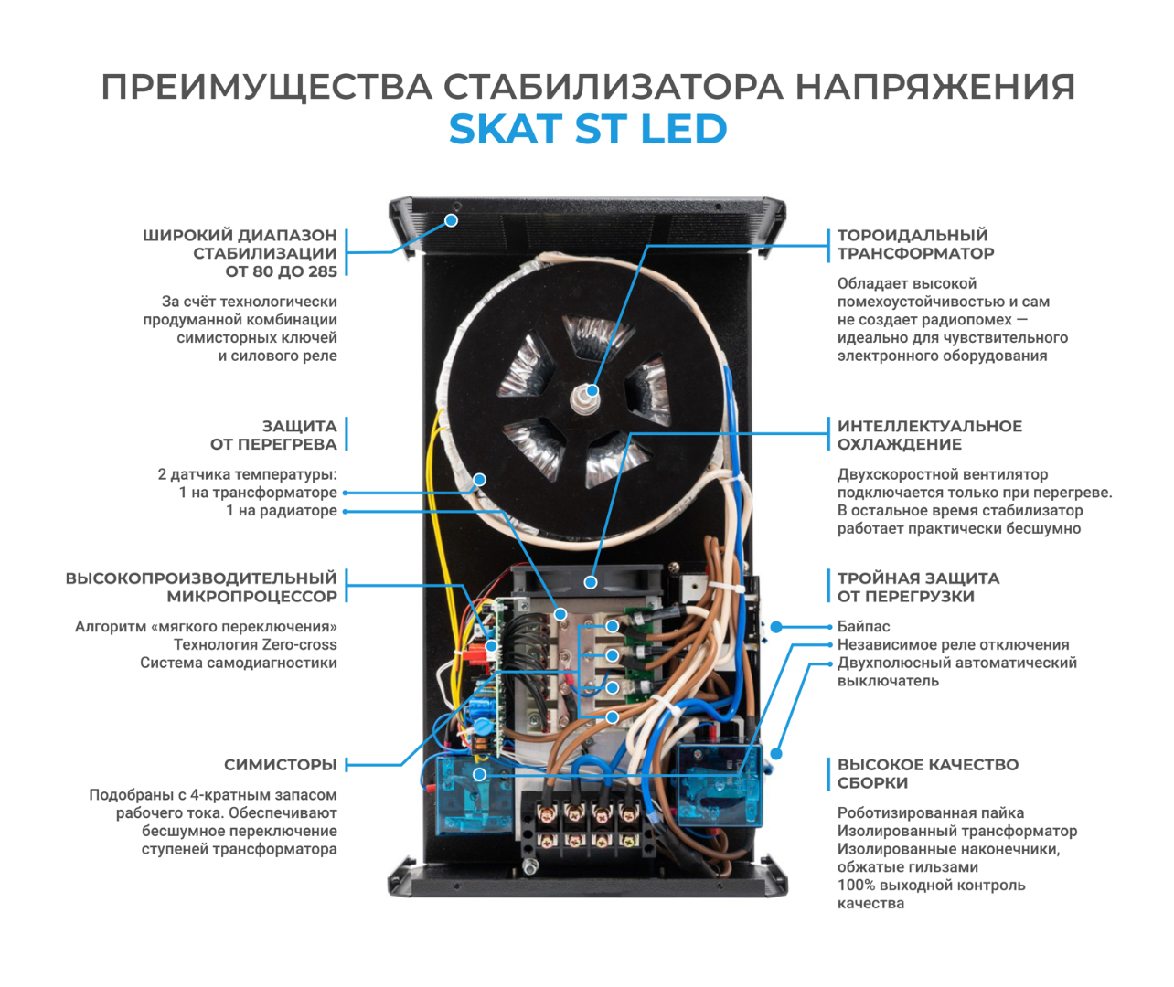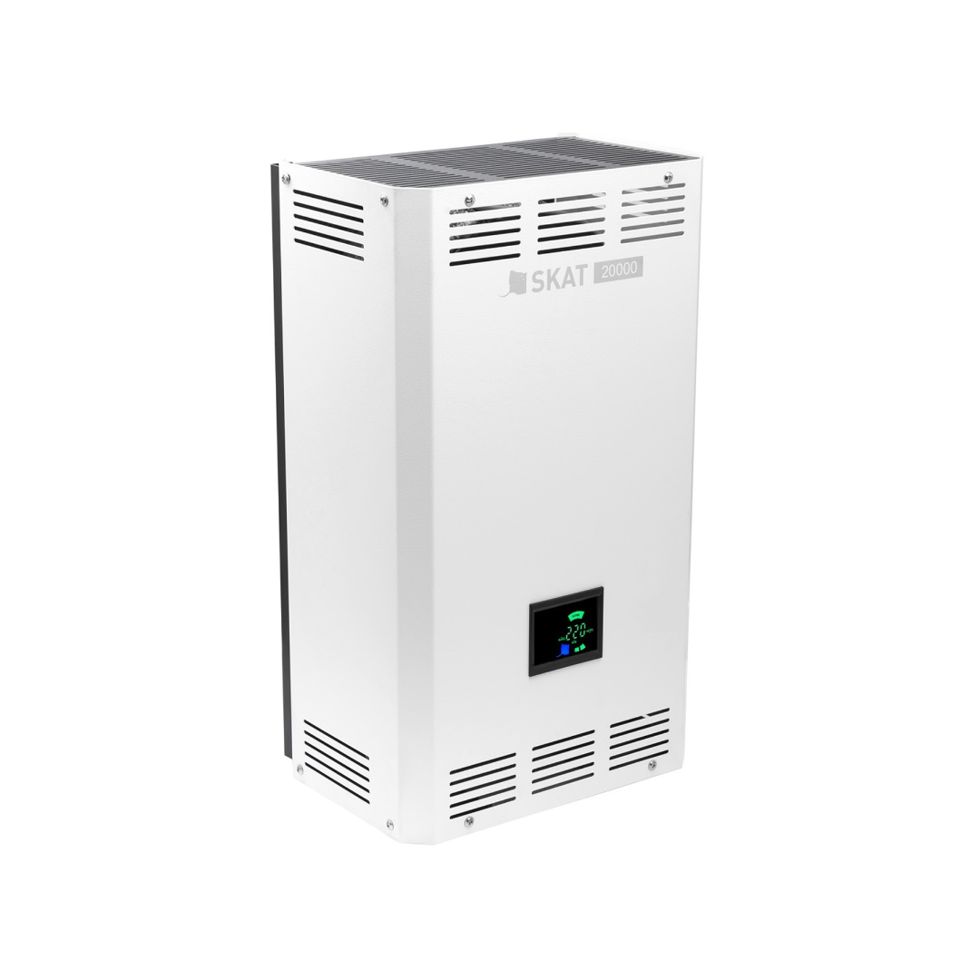 <div><h2>Технические характеристики <!-- -->SKAT ST-20000 LED</h2><div><figure class="table"><table class="table table-bordered table-striped"><tbody><tr><td>Номинальная мощность нагрузки, не более, Вт</td><td style="text-align:center;">13800</td></tr><tr><td>Максимальный входной ток, А</td><td style="text-align:center;">63</td></tr><tr><td>Максимальная, пиковая мощность нагрузки, не более, ВА (не более 7 минут)</td><td style="text-align:center;">20000</td></tr><tr><td>Мощность, потребляемая от сети без нагрузки, не более, ВА</td><td style="text-align:center;">40</td></tr><tr><td>Максимальное сечение провода, зажимаемого в клеммах колодки, мм2</td><td style="text-align:center;">10</td></tr><tr><td>Габаритные размеры ШхВхГ, не более, мм, (без упаковки)</td><td style="text-align:center;">315x545x225</td></tr><tr><td>Габаритные размеры ШхВхГ, не более, мм, (в упаковке)</td><td style="text-align:center;">370х600х330</td></tr><tr><td>Macca, HETTO (БРУТТО), не более, кг</td><td style="text-align:center;">21,5 (23,5)</td></tr><tr><td>Напряжение питающей сети 220 В, частотой 50±1 Гц, В</td><td style="text-align:center;">220</td></tr><tr><td>Точность стабилизации, %</td><td style="text-align:center;">7</td></tr><tr><td>Количество ступеней стабилизации, шт.</td><td style="text-align:center;">5</td></tr><tr><td>Рабочий диапазон входного напряжения, В</td><td style="text-align:center;">146...264</td></tr><tr><td>Расширенный диапазон входного напряжения, В</td><td style="text-align:center;">80...285</td></tr><tr><td>Макс. допустимое разрешение входного напряжения, В</td><td style="text-align:center;">420</td></tr><tr><td>Cpеднее время переключения, мс</td><td style="text-align:center;">10</td></tr><tr><td>Степень защиты оболочкой по 14254-2015</td><td style="text-align:center;">ІР20</td></tr><tr><td>Содержание драг. металлов и камней</td><td style="text-align:center;">Нет</td></tr></tbody></table></figure><p><br>Примечание: Номиналы напряжений указаны с допуском +2B.</p><figure class="table"><table><tbody><tr><td> </td></tr></tbody></table></figure></div></div>