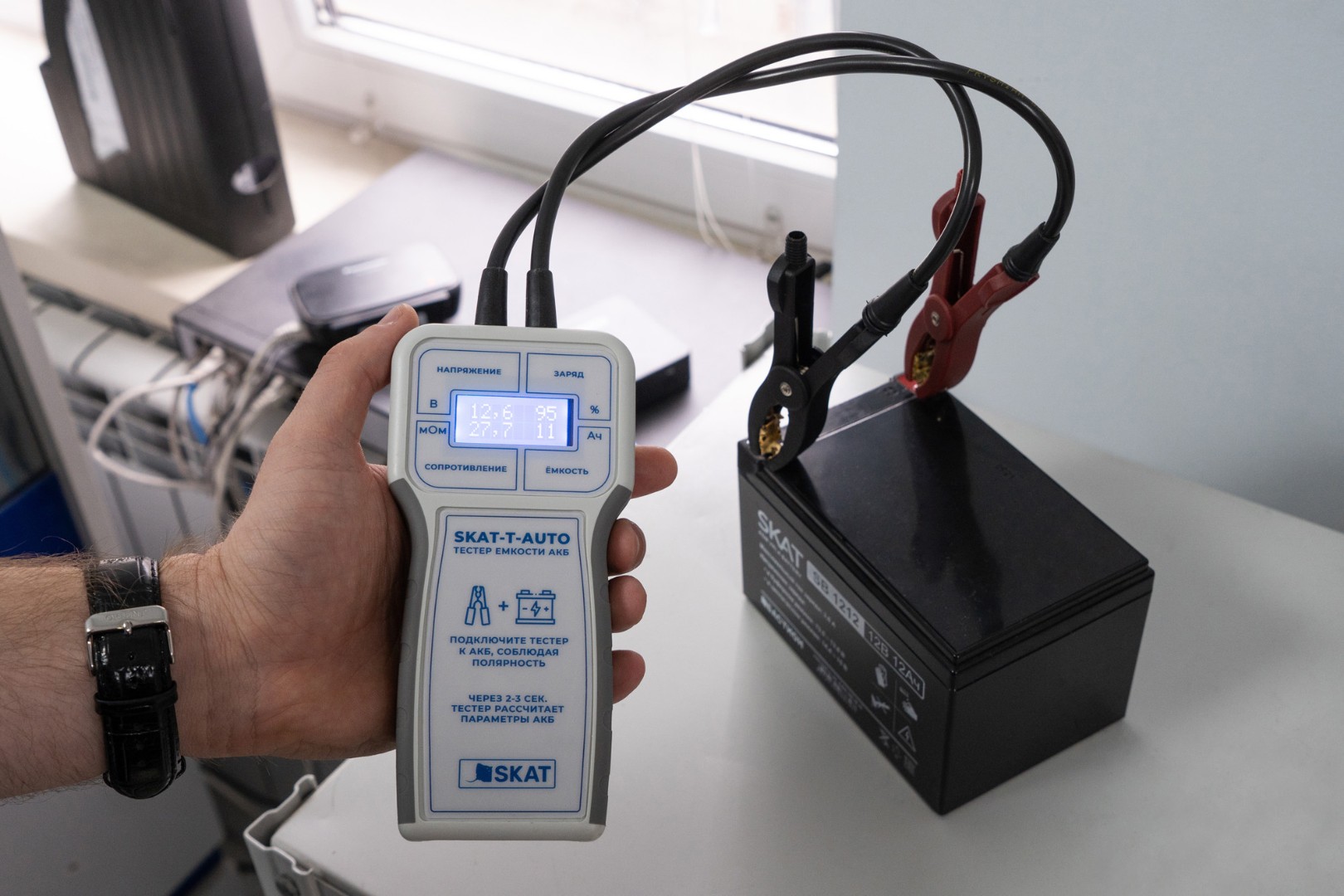 Автоматический тестер ёмкости аккумуляторных батарей SKAT-T-Auto предназначен для оперативной оценки технического состояния и остаточной ёмкости свинцово-кислотных АКБ с номинальным напряжением 12 В и номинальной ёмкостью 1,2-200 Ач.
