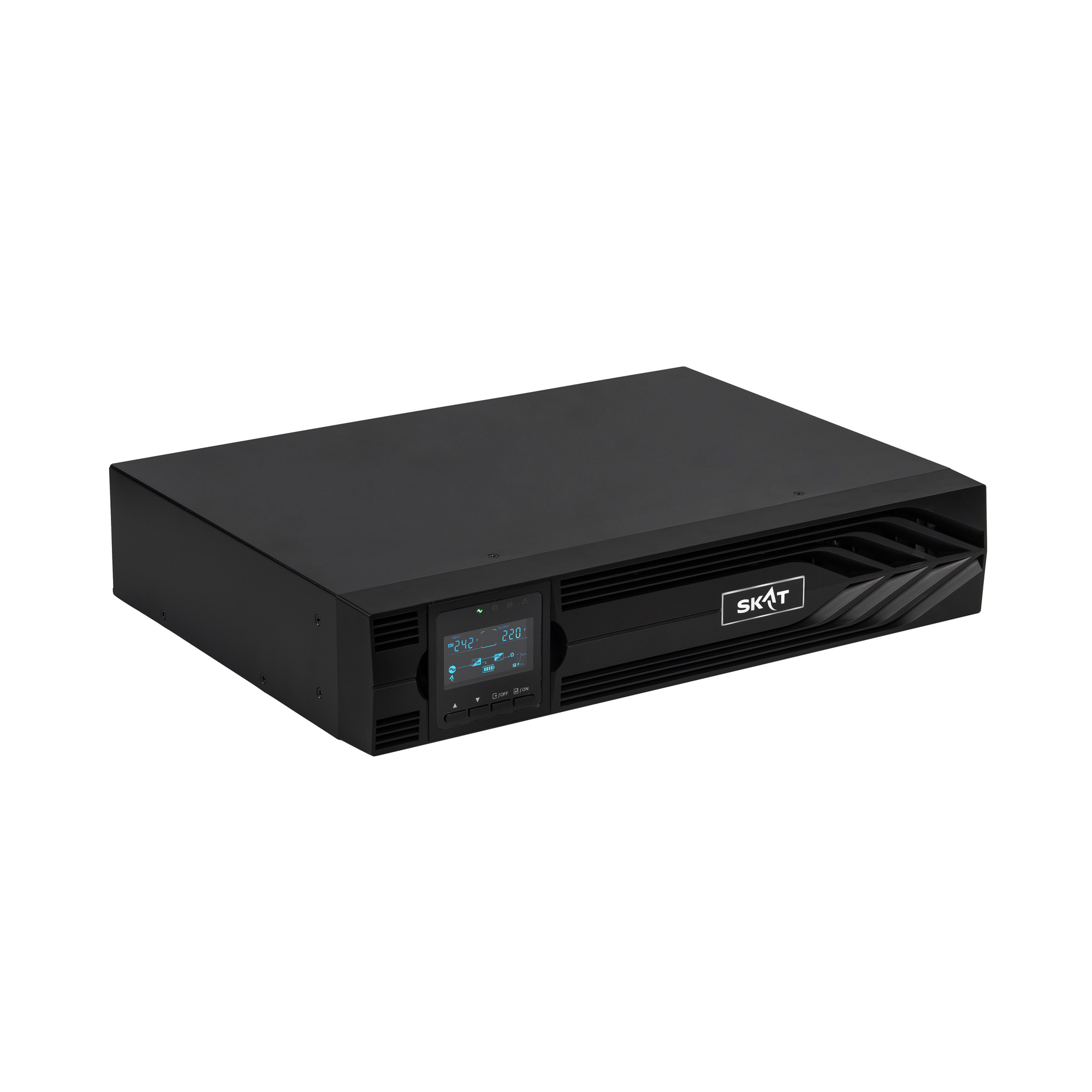 <div><h2>Технические характеристики <!-- -->SKAT-UPS 1000-RACK-ON-2X9-E P3</h2><div><figure class="table" style="width:100%;"><table class="table table-bordered table-striped ck-table-resized"><colgroup><col style="width:4.39%;"><col style="width:29.81%;"><col style="width:18.76%;"><col style="width:22.72%;"><col style="width:24.32%;"></colgroup><tbody><tr><td>№</td><td colspan="3">Наименование параметра</td><td>Значение параметра</td></tr><tr><td colspan="5"><p style="text-align:center;"><strong>ВХОДНЫЕ ПАРАМЕТРЫ</strong></p></td></tr><tr><td>1</td><td colspan="3">Номинальное входное напряжение (Uном), В</td><td><strong>220</strong></td></tr><tr><td rowspan="8">2</td><td rowspan="8">Допустимые диапазоны входного напряжения без перехода на питание от АКБ (температура окружающей среды не более 40 °С), В</td><td rowspan="2">нижний порог перехода в режим работы от АКБ</td><td>при нагрузке 0%…50%</td><td><strong>110 ± 5 %</strong></td></tr><tr><td>при нагрузке 100%…50%</td><td><strong>176 ± 5 %</strong></td></tr><tr><td rowspan="2">нижний порог возврата в режим работы от сети</td><td>при нагрузке 0%…50%</td><td><strong>120 ± 5 %</strong></td></tr><tr><td>при нагрузке 100%…50%</td><td><strong>186 ± 5 %</strong></td></tr><tr><td rowspan="2">верхний порог перехода в режим работы от АКБ</td><td>при нагрузке 0%…50%</td><td><strong>300 ± 5 %</strong></td></tr><tr><td>при нагрузке 100%…50%</td><td><strong>264 ± 5 %</strong></td></tr><tr><td rowspan="2">верхний порог возврата в режим работы от сети</td><td>при 50% нагрузке</td><td><strong>290 ± 5 %</strong></td></tr><tr><td>при 100% нагрузке</td><td><strong>254 ± 5 %</strong></td></tr><tr><td>3</td><td colspan="3">Допустимый диапазон изменения частоты входного напряжения, Гц</td><td><strong>40…70**</strong></td></tr><tr><td>4</td><td colspan="3">Диапазон частоты входного напряжения без перехода на питание от АКБ при 100% нагрузке, Гц</td><td><strong>46…54 / 56…64**</strong></td></tr><tr><td>5</td><td colspan="3">Входной коэффициент мощности (при 100% нагрузке и номинальном входном напряжении), не менее</td><td><strong>0,99</strong></td></tr><tr><td>6</td><td colspan="3">Питание от генератора</td><td><strong>поддерживается</strong></td></tr><tr><td colspan="5"><p style="text-align:center;"><strong>ВЫХОДНЫЕ ПАРАМЕТРЫ</strong></p></td></tr><tr><td>7</td><td colspan="3">Выходное напряжение, В</td><td><strong>208 / 220 / 230 / 240</strong></td></tr><tr><td rowspan="2">8</td><td colspan="2" rowspan="2">Номинальная выходная мощность</td><td>Полная, ВА</td><td><strong>1000*</strong></td></tr><tr><td>Активная, Вт</td><td><strong>1000*</strong></td></tr><tr><td>9</td><td colspan="3">Выходной коэффициент мощности, не менее </td><td><strong>1,0</strong></td></tr><tr><td>10</td><td colspan="3">Регулировка напряжения</td><td><strong>± 1 %</strong></td></tr><tr><td rowspan="2">11</td><td colspan="2" rowspan="2">Частота, Гц</td><td>Основной режим работы</td><td><strong>46 - 54 или 56 - 64</strong></td></tr><tr><td>Режим работы от АКБ</td><td><strong>50 / 60 ± 0,1</strong></td></tr><tr><td>12</td><td colspan="3">Максимальный коэффициент пиковой импульсной нагрузки (крест-фактор)</td><td><strong>3:1</strong></td></tr><tr><td rowspan="2">13</td><td colspan="2" rowspan="2">Коэффициент нелинейных искажений выходного напряжения (КИ), %, не более</td><td>линейная нагрузка</td><td><strong>3</strong></td></tr><tr><td>нелинейная нагрузка</td><td><strong>5</strong></td></tr><tr><td>14</td><td colspan="3">Форма выходного напряжения</td><td><strong>синусоидальная</strong></td></tr><tr><td rowspan="2">15</td><td rowspan="2">Время переключения из режима «ОСНОВНОЙ»</td><td colspan="2">в режим «БАЙПАС», мс, не более</td><td><strong>4</strong></td></tr><tr><td colspan="2">в режим «РЕЗЕРВ», мс</td><td><strong>0</strong></td></tr><tr><td>16</td><td colspan="3">КПД при номинальной нагрузке в режиме «ОСНОВНОЙ», не менее, %</td><td><strong>89</strong></td></tr><tr><td>17</td><td colspan="4"><strong>Тип АКБ: герметичные свинцово-кислотные необслуживаемые, номинальным напряжением 12 В</strong></td></tr><tr><td>18</td><td colspan="3">Рекомендуемая емкость внутренних АКБ, Ач</td><td><strong>9</strong></td></tr><tr><td>19</td><td colspan="3">Количество АКБ, шт.</td><td><strong>2</strong></td></tr><tr><td>20</td><td colspan="3">Среднее время заряда АКБ до 90 % емкости, ч</td><td><strong>4</strong></td></tr><tr><td>21</td><td colspan="3">Ток заряда АКБ, А</td><td><strong>2</strong></td></tr><tr><td>22</td><td colspan="3">Напряжение заряда АКБ</td><td><strong>27,4 ± 1%</strong></td></tr><tr><td rowspan="3">23</td><td colspan="2" rowspa
