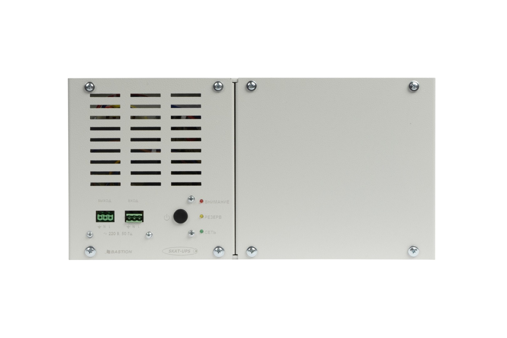 В случае отключения электроэнергии источник продолжает питать оборудование за счёт встроенной аккумуляторной батареи ёмкостью 17 Ач (не входит в комплектацию)