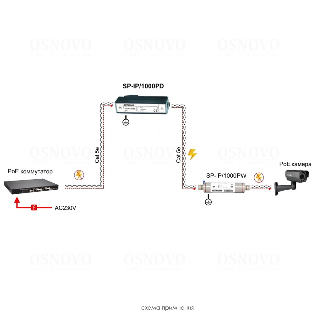 Устройство грозозащиты для локальной вычислительной сети (скорость до 1000 Мбит/с) с защитой линий PoE (af/at, методы A + B, контакты 1/2, 3/6, 4/5, 7/8). Двухступенчатая защита. Максимальное длительное рабочее напряжение (Uс) DC57V. Номинальный ток разряда (8/20 мкс, In) 2,5kA. Суммарный ток разряда (8/20 мкс, Itotal) 10kA. Время отклика 1нс. 1 вход (RJ45-мама), 1 выход (RJ45-мама). Монтаж на DIN-рейку. Размеры (ШхВхГ): 26x93,5x27мм. Рабочая температура: -40…+80°С.