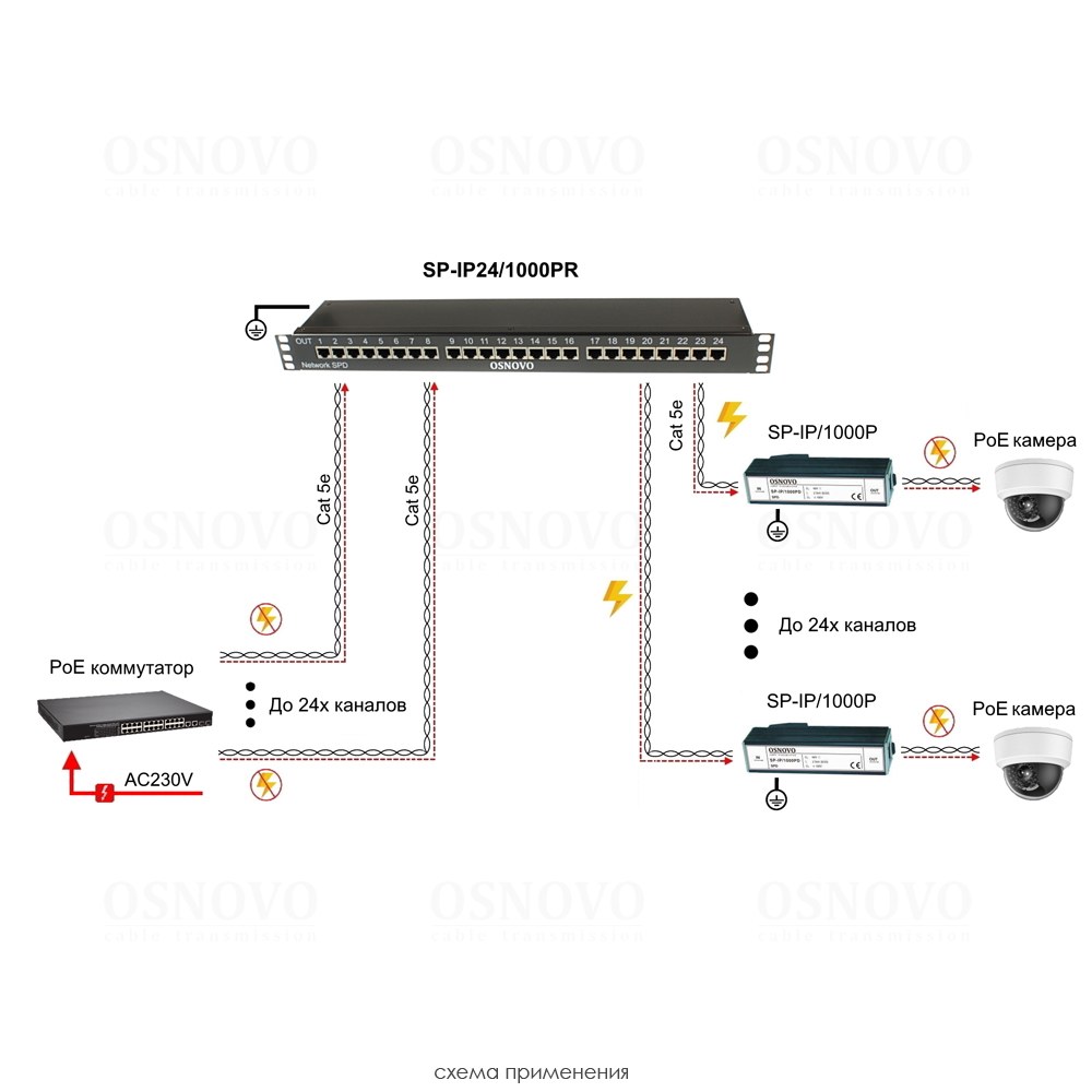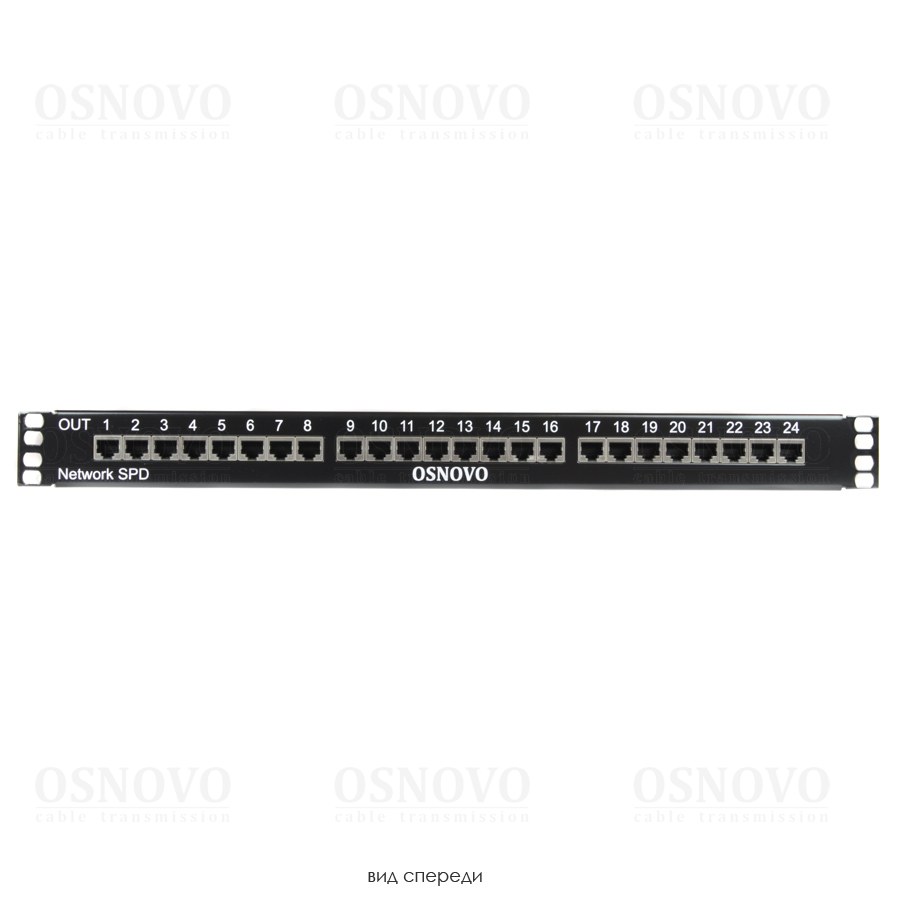 1U устройство грозозащиты для локальной вычислительной сети на 24 порта (скорость до 1000 Мб/с) с защитой линий PoE (af/at/bt, методы A + B, контакты 1/2, 3/6, 4/5, 7/8). Двухступенчатая защита. Максимальное длительное рабочее напряжение (Uс) DC58V. Номинальный ток разряда (8/20 мкс, In) 2,5kA. Суммарный ток разряда (8/20 мкс, Itotal) 20kA. Время отклика 1нс. 24 входа (RJ45-мама), 24 выхода (RJ45-мама). Монтаж в 19" стойку (1U). Размеры (ШхВхГ): 487x44,5x102мм. Рабочая температура: -40…+80°С.