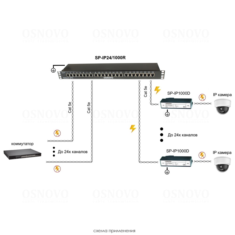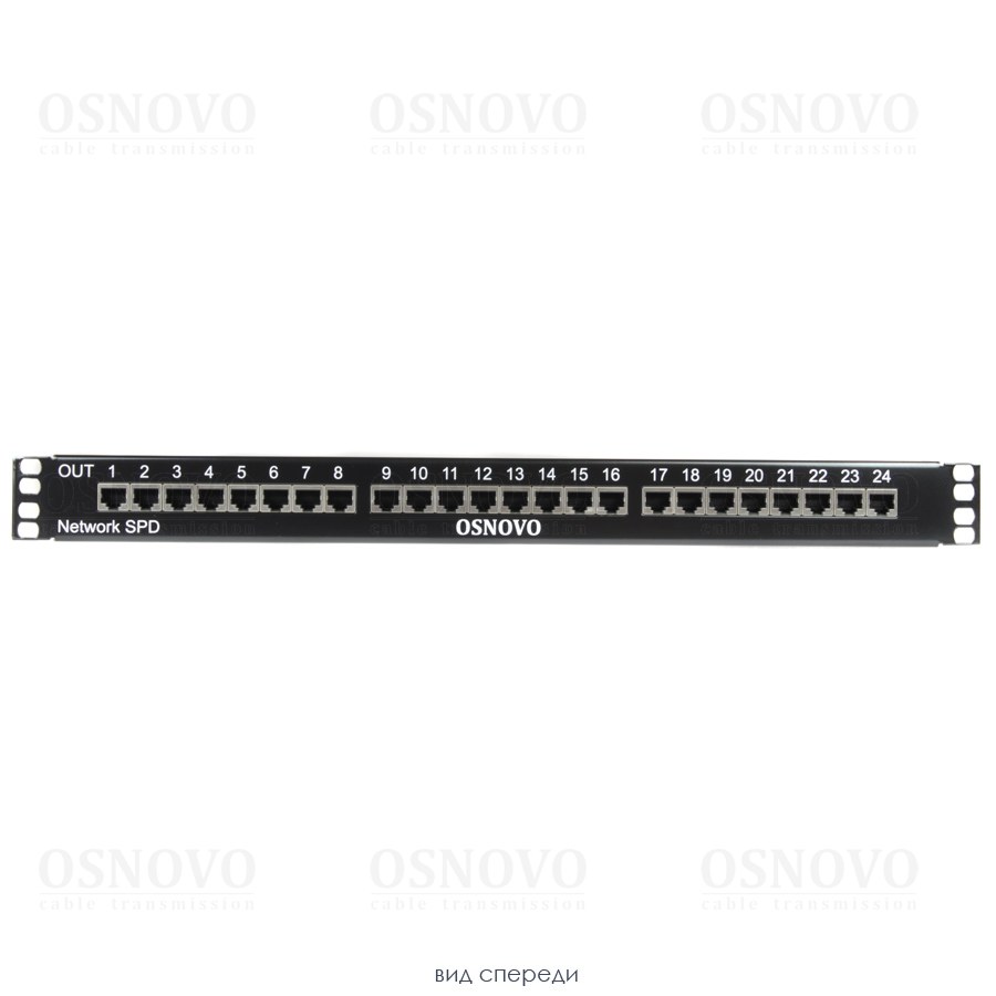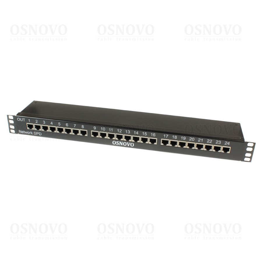 Устройство грозозащиты для локальной вычислительной сети (скорость до 1000 Мбит/с) на 24 порта. Двухступенчатая защита. Максимальное длительное рабочее напряжение (Uc) 6V. Номинальный ток разряда (8/20 мкс, In) 2,5kA. Суммарный ток разряда (8/20 мкс, Itotal) 20kA. Время отклика не более 1 нc. 24 входов (RJ45-мама), 24 выходов (RJ45-мама). Монтаж в 19" стойку (1U). Размеры (ШхВхГ): 487x44,5x102мм. Рабочая температура: -40…+80°С.