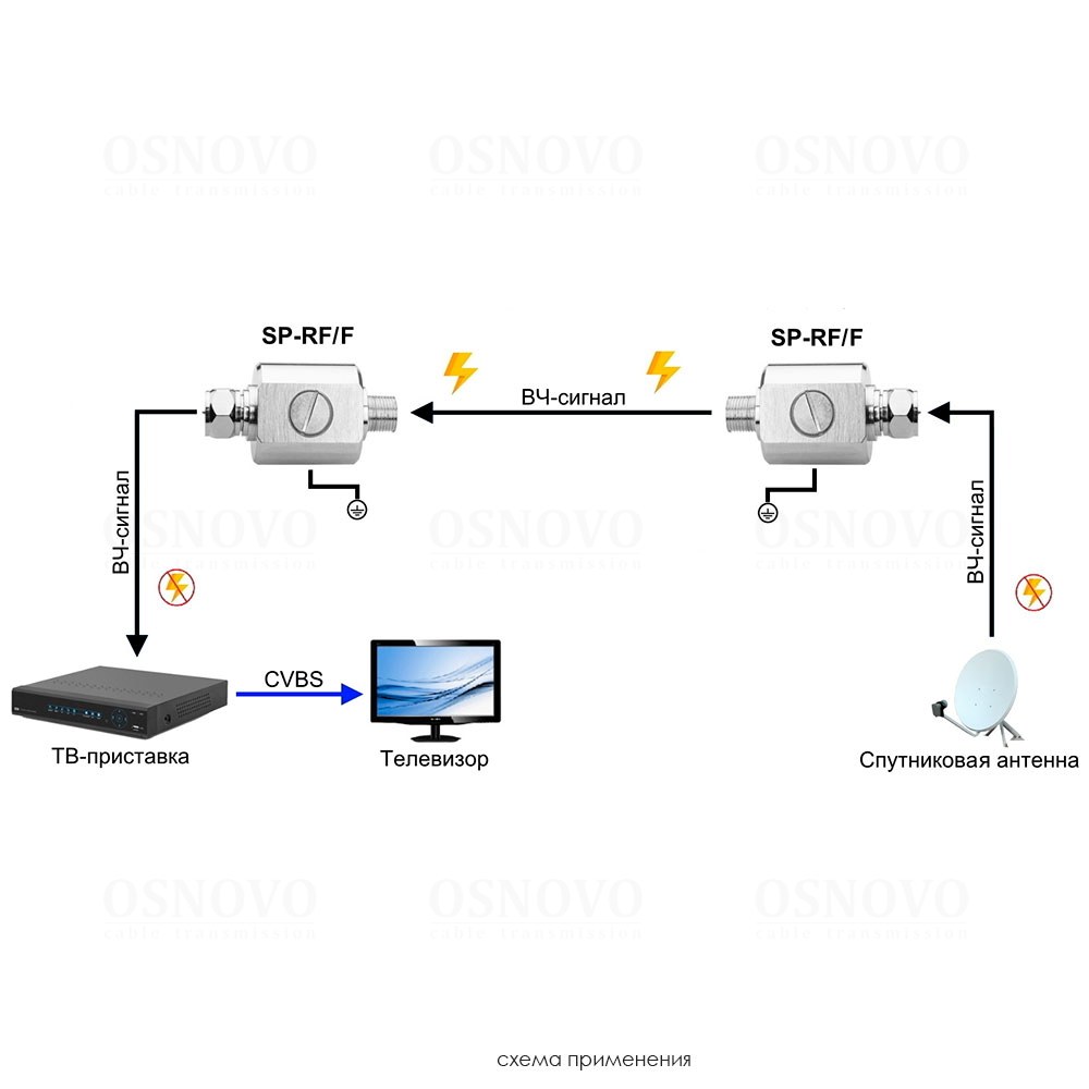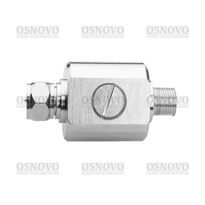 Устройство грозозащиты для цепей 0-2ГГц. Подключение -F-разъём. Размеры (ШxВxГ): 23х23х50мм.