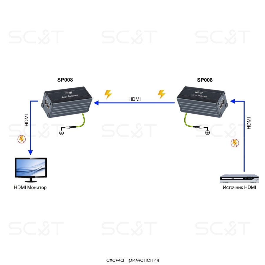 Устройство грозозащиты HDMI (v.1.4). Максимальное напряжение перегрузки 8КВ. Полоса пропускания до 10.2Гбит/с. Вх. - HDMI(A). Вых. - HDMI(A). Размеры (ШxВxГ): 25,4x25,4x58,3мм. Рабочая температура -40...+55°C.