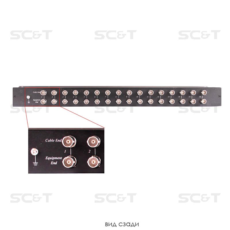 Устройство грозозащиты цепей видео HDCVI/HDTVI/AHD на 16 каналов для коаксиального кабеля. Трёхступенчатая защита. Полоса пропускания видеосигнала до 60MHz. Максимальное длительное рабочее напряжение (Uс) DC6V. Номинальный ток разряда (8/20мкс, In) 15kA. Суммарный ток разряда (8/20мкс, Itotal) 15kA. Время отклика не более 1нс. Вх. - BNCx16. Вых. - BNCx16. Размеры (ШxВxГ): 442x44x185,5мм. Монтаж в стойку 19'. Рабочая температура -40...+85°C.