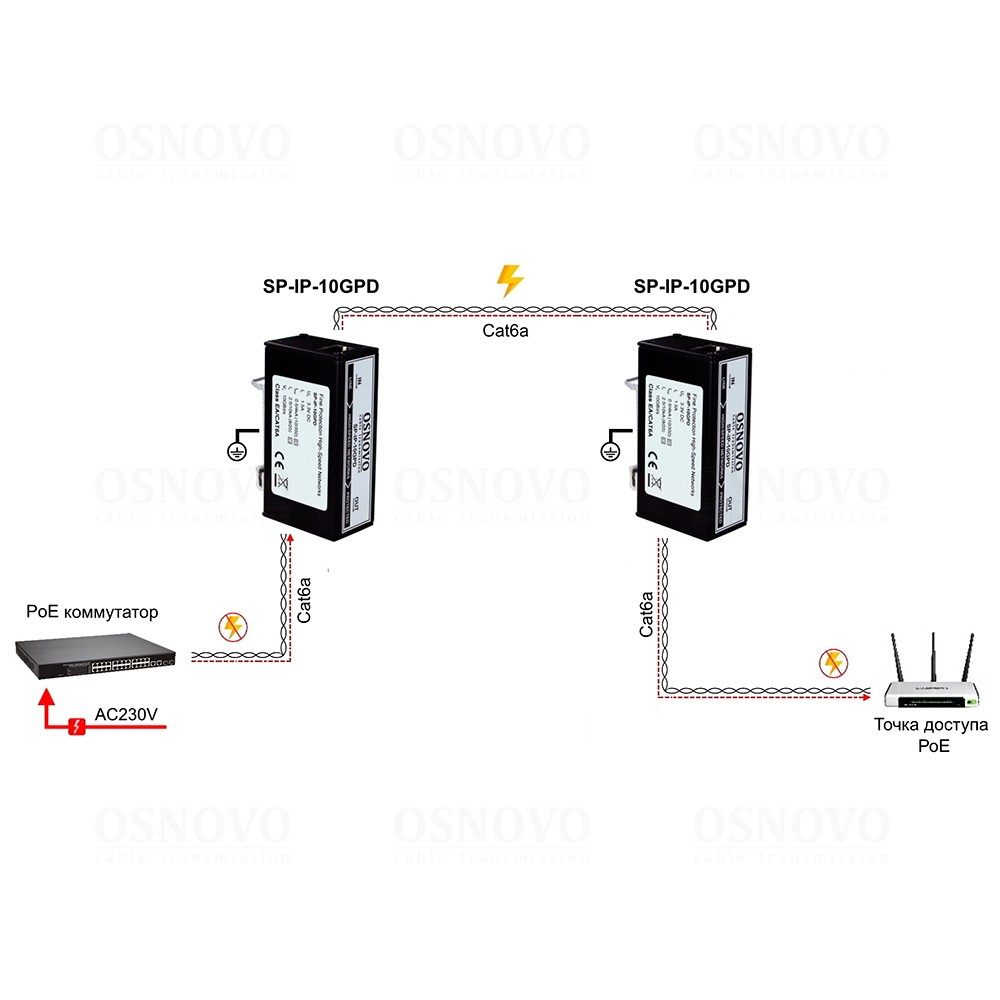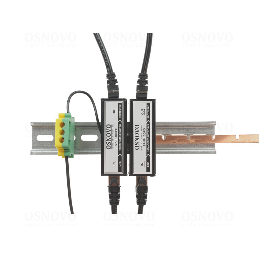 Устройство грозозащиты для локальной вычислительной сети (скорость до 2,5 Гбит/с для кабеля Сat5e, скорость до 10 Гбит/с для кабеля Сat6a) с защитой линий PoE (af/at/bt, методы A + B, контакты 1/2, 3/6, 4/5, 7/8). Двухступенчатая защита. Максимальное длительное рабочее напряжение (Uс) DC58V. Номинальный ток разряда (8/20 мкс, In) 1,5kA. Суммарный ток разряда (8/20 мкс, Itotal) 10kA. Время отклика 1нс. 1 вход (RJ45-мама), 1 выход (RJ45-мама). Монтаж на DIN-рейку. Размеры (ШхВхГ): 25x73x50мм. Рабочая температура: -40…+80°С.