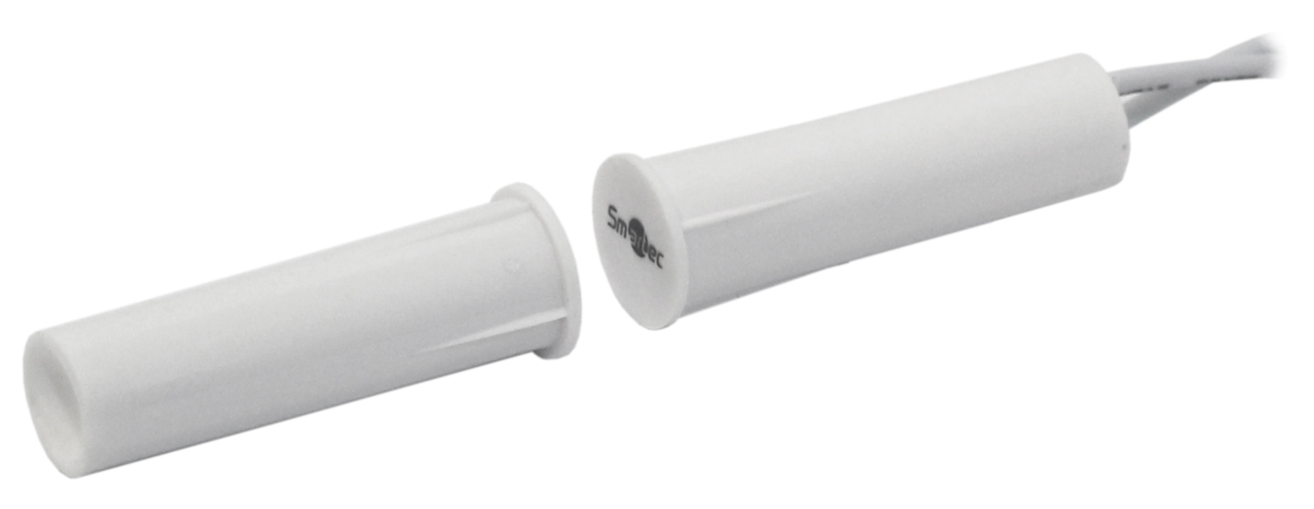Магнитоконтактный датчик, НЗ, белый, врезной для деревянных дверей, зазор 35 мм
