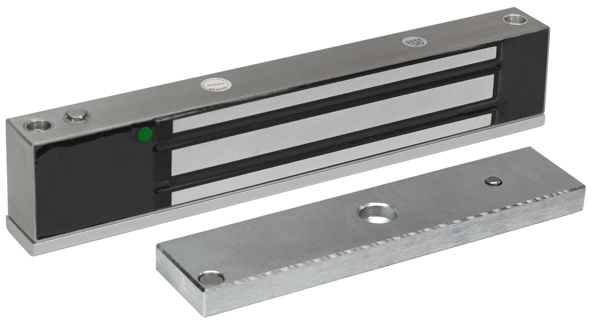 Электромагнитный замок, уличное исполнение, СИД, датчик положения двери, IP68, нержавеющая сталь, усилие 260-280 кг.